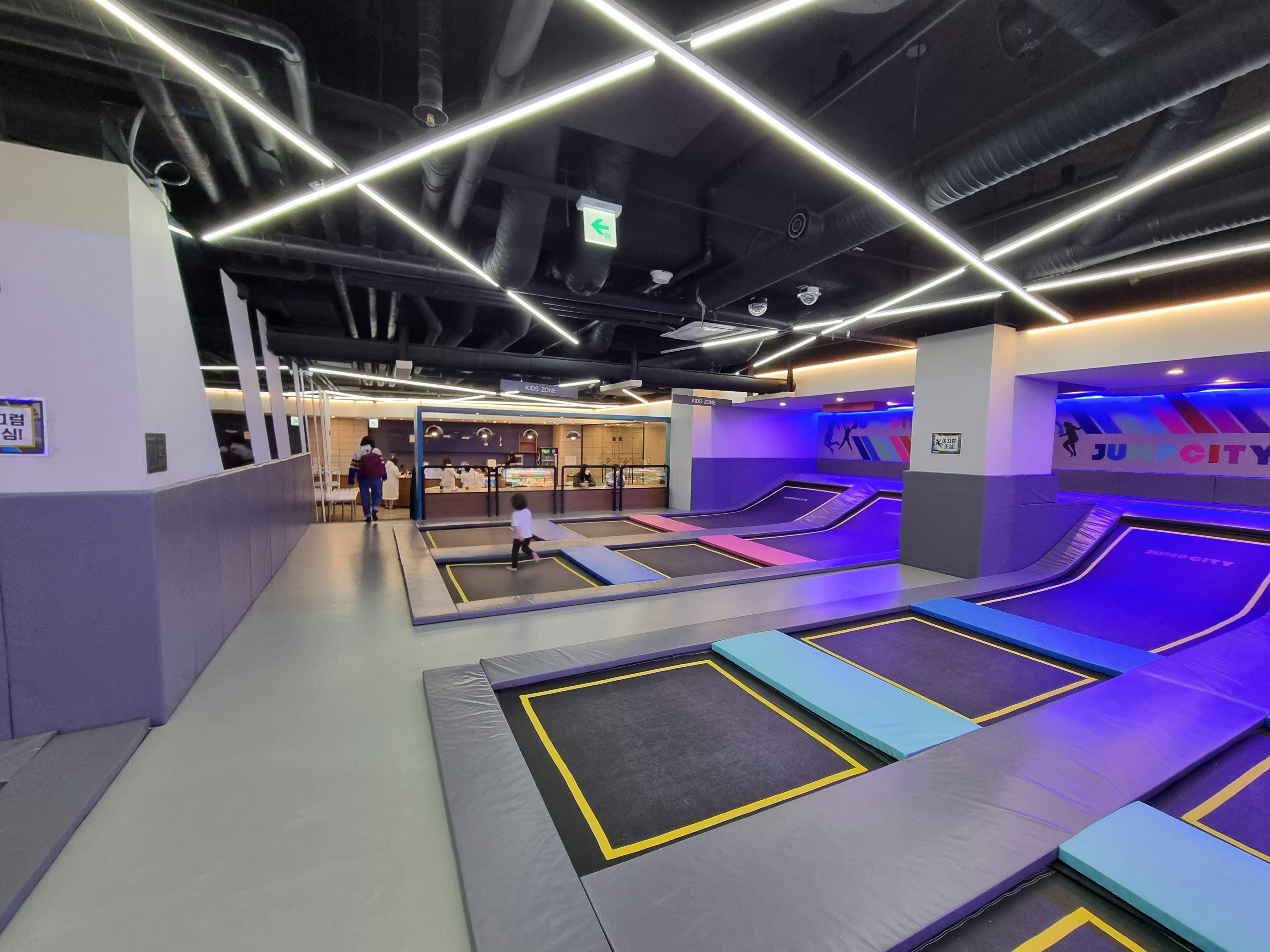 생수는 기본 2병이라고 하는데 3병이 있었음. 역시 아이는 침대에서 뛰는게 제일 재미있는듯 하다. 객실은 여느 특급호텔과 같은 듯 보인다. 트윈 침대에 화장실 벽걸이 TV 모두가 다 같다. 약 10평 남짓되는 공간에 더 바랄 건 없다. 푹신한 침대 매트리스와 따스한 침구만 있으면 된다. 아이는 오자마자 놀이방에 가자고 한다. 와이프가 이곳을 선택한 이유 중에 가장 큰 이유가 놀이방이었다. 영아와 유아가 각각 놀 수 있게 놀이방이 따로 있다. 우리 아이는 이제 커서 호텔 지하 1층에 있는 '점프 시티(JUMP CITY)'로 갔다(아이 1만 원 부모는 입장료 없음) 꽤 넓은 공간에 트램폴린이 설치되어 있다. 아이는 뛰어놀다 친구를 사귀었는지 목마르다며 아이스크림과 음료수를 먹을 때를 제외하곤 얼굴을 보기 힘들었다. 정말 신나게 놀건 같다.