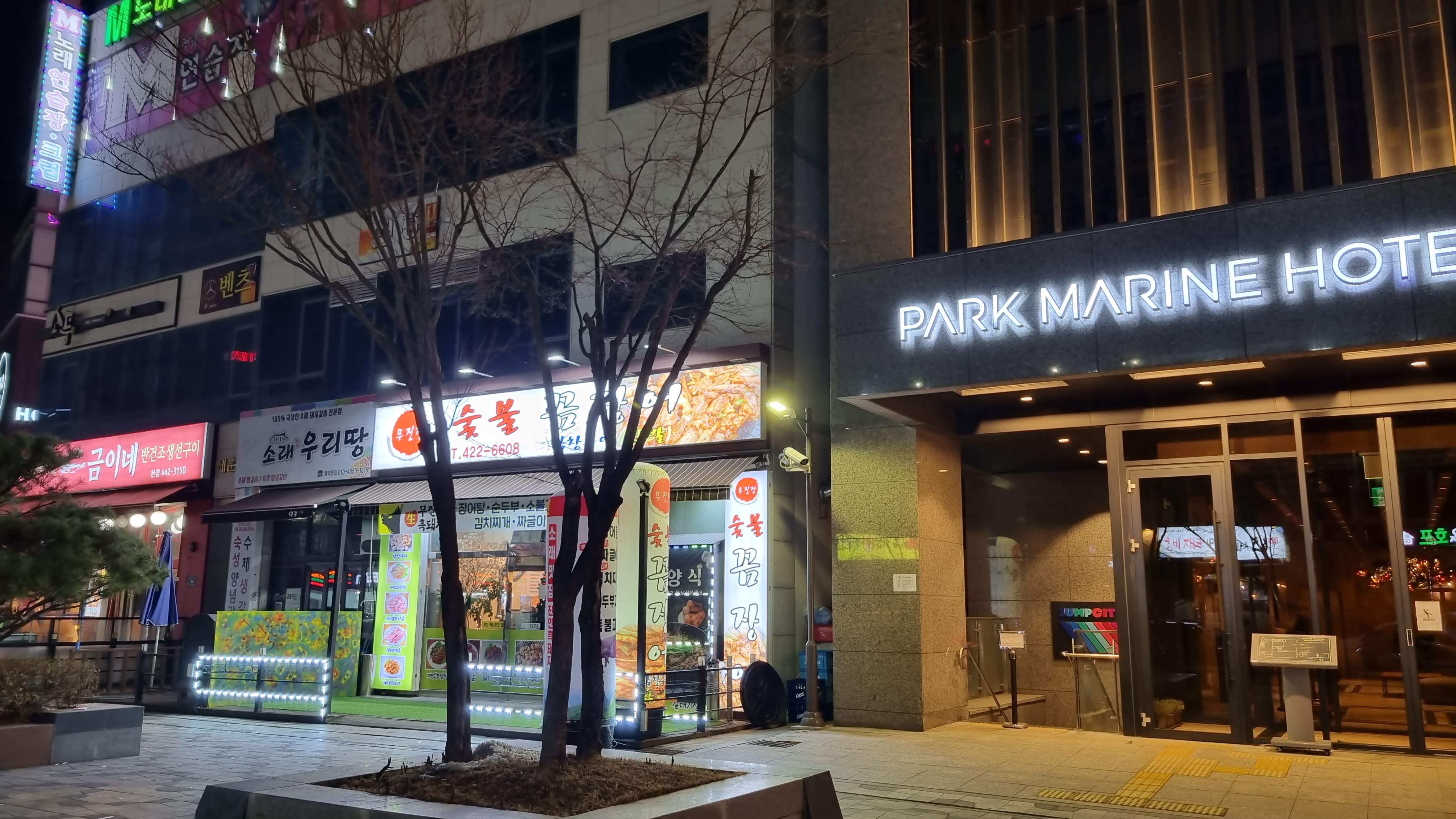 매번 동해안으로 여행을 가면 거리도 멀고 운전하기가 힘들었는데 이번 인천 여행은 멀지 않아 가벼운 마음으로 출발할 수 있었다. 차로 50여분 가니 소래포구가 눈에 들어온다. 북적북적하고 생선 비린내와 젓갈의 짠내음이 뒤섞여 감각이 약간 혼미해진다. 눈으로 보이는 생선구이집 간판과 어시장 간판 그 한가운데 복잡한 주차장 간판까지 숙소인 파크마린호텔을 가기 위한 길을 잘 못 들어 소래포구 어시장을 둘러서 갈 수 있었는데 많은 변화가 있는 것 같다. 동해안의 주문진 수산시장을 보는 듯한 느낌이었다. 몇 번 와보았던 소래포구라고 할 수 없을 정도였다. 3시가 넘어서 바로 호텔로 차를 몰았다. 파크마린호텔이 보인다. 주자창으로 들어서니 아뿔싸 주차장이 타워식 주차장이다. "어라! 내 차 들어갈 수 있나?" 잠시 생각했다(몇 년 동안 차 위에 루프탑텐트를 달고 다녔었다). 맞아! 내 차에서 루프탑텐트 내렸지! 다행이다. 속으로 생각했다. 잠시나마 긴장해서 이마에 땀이 날뻔했다. 아마다 우리 가족은 내 심정을 몰랐을 것이다. 발레파킹 해주시는 분이 차를 주차해준다. 차에서 짐을 챙겨 프런트에서 체크인을 한 후 바로 8층 객실로 올라간다. 맘속으로 뷰는 기대 안 하기로 생각했다. 역시나 전철역 뷰였다. 그래도 좀 멀리 떨어져 있어서 그나마 다행이다.