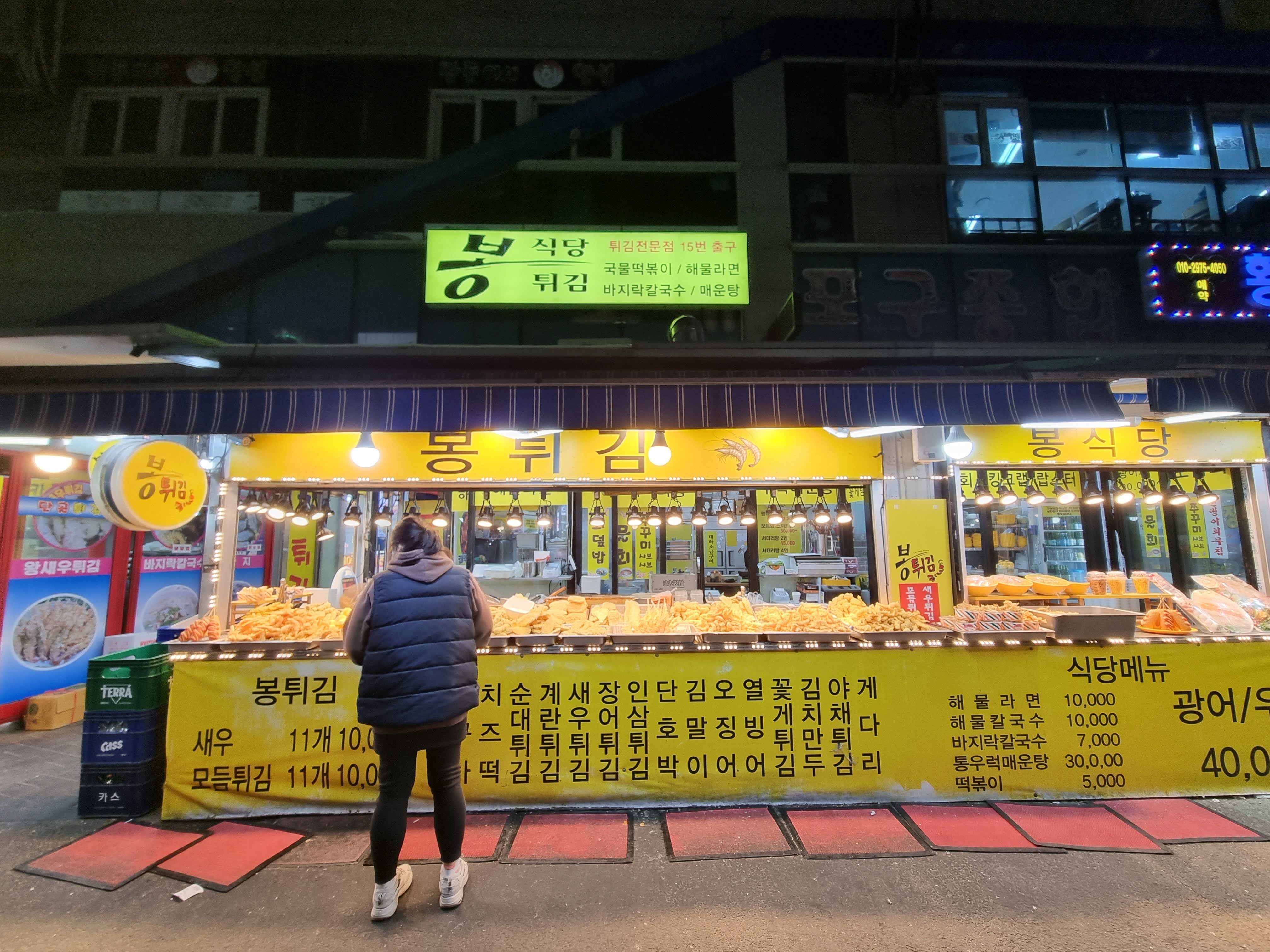 튀김집이 워낙 많음. 그냥 군것질 하기 너무 좋음. 호텔로 돌아가기 전 새우 타워를 산책하고 포구어시장 1층 봉튀김에서 튀김을 만 원어치 사고 편의점에서 맥주 한 캔과 음료를 사고 호텔로 들어왔다. 배가 불러서 맥주 몇 모금을 마시고 어느새 잠이 들어 버렸다.