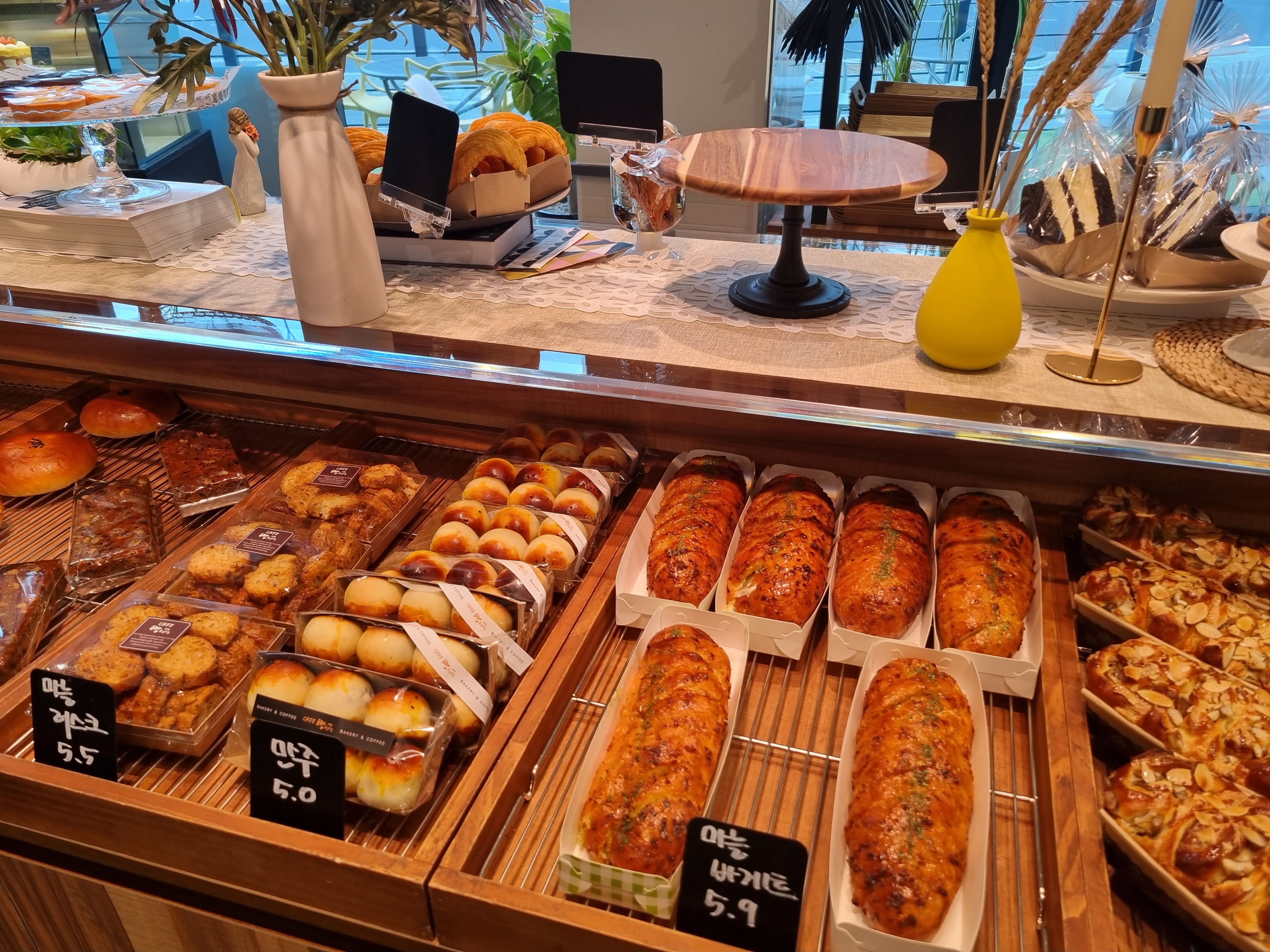 샌드위치는 아삭한 사과가 들어가서 그런지 별다른 소가가 없어도 건강한 맛이났고 씹을수록 맛이 좋았다. 밤파이는 앙금이 들어가서 안맛있수고 없고 크로와상은 아이가 집에와서 혼자 다 먹었다. 처음에는 벽에 크게 걸려 있어 알게 된 김상범 파티시에가 직접하는 빵집은 줄 알았더니 추후 블로그를 포스팅할 때 알아보니 19년까지 대표로 있었고 프랜차이즈로 운영되는 빵집이었다. 울 동네 가까이에도 점포가 있다. 소래포구 빵선생은 주변 환경이 전철역 바로 앞에 있어 여느 빵카페처럼 전망이 좋진 않지만 소래포구에 왔거나 근처 숙소에서 숙박을 할 때 빵과 커피를 함께 먹을 수 있는 나쁘지 않은 빵집인 것 같다.
