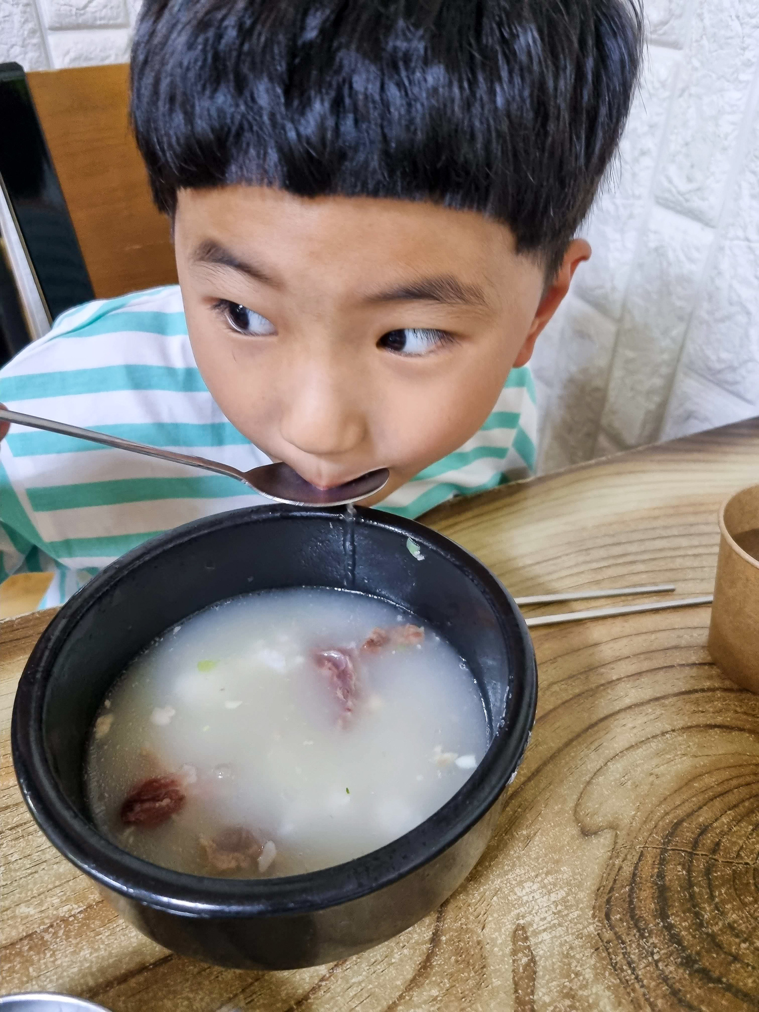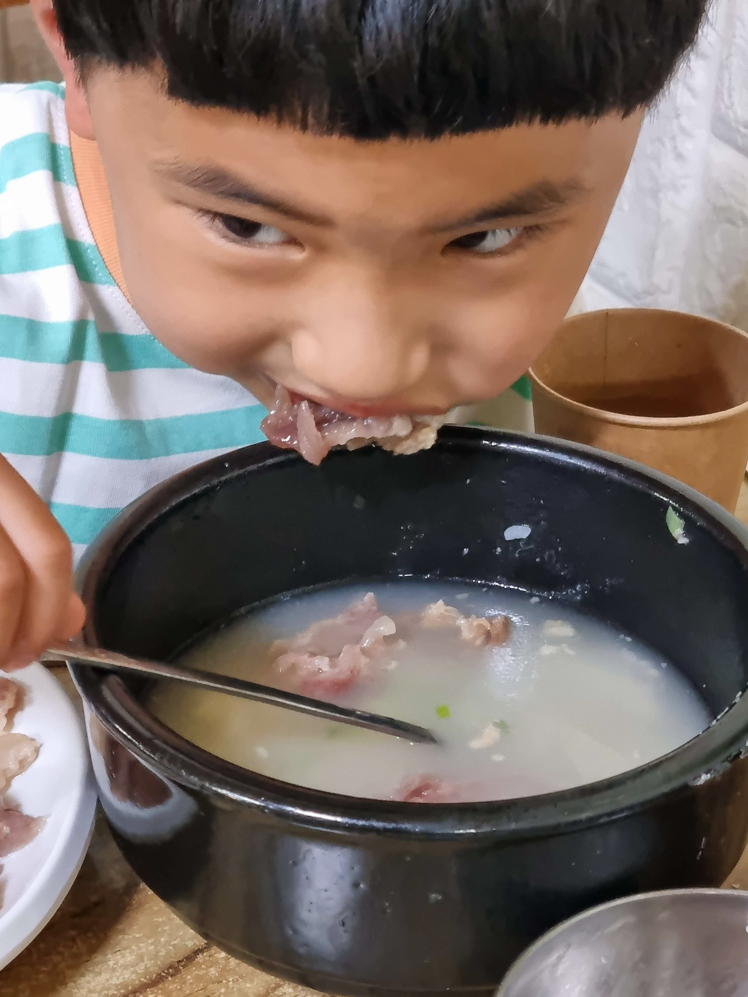 혼자서 도가니 수육을 다 먹느라고 힘들었다. ㅎㅎ. 후추, 소금, 고추가루 등이 사이드로 있다. 아이도 한 입 먹더니 도가니탕을 잘 먹는다. 물론 파는 모두 제거한 상태였다. 함께 먹으면 좋으련만 아직 6살 아이에겐 파는 무리였다. 후에 간장에 찍은 도가니를 너무 잘 먹어서 보는 내가 더 기분이 좋았다. 정말 옛말 틀린 거 하나 없다. 아이가 먹는 것만 봐도 행복하다는 말이 맞는 말이다. 아내도 별말 없이 김치를 더 리필하라며 잘 먹었다. 아무 말 없는 걸 보니 그렇게 맛이 없지는 않은 모양이다. 동네 앞에 이런 집이 있으면 정말 좋을 텐데 하는 생각이었다. 그냥 슬리퍼 끌고 편한 복장으로 쉬는 날 도가니탕 한 그릇에 소주 한 병 시켜 낮술 하는 행복한 상상을 해본다.