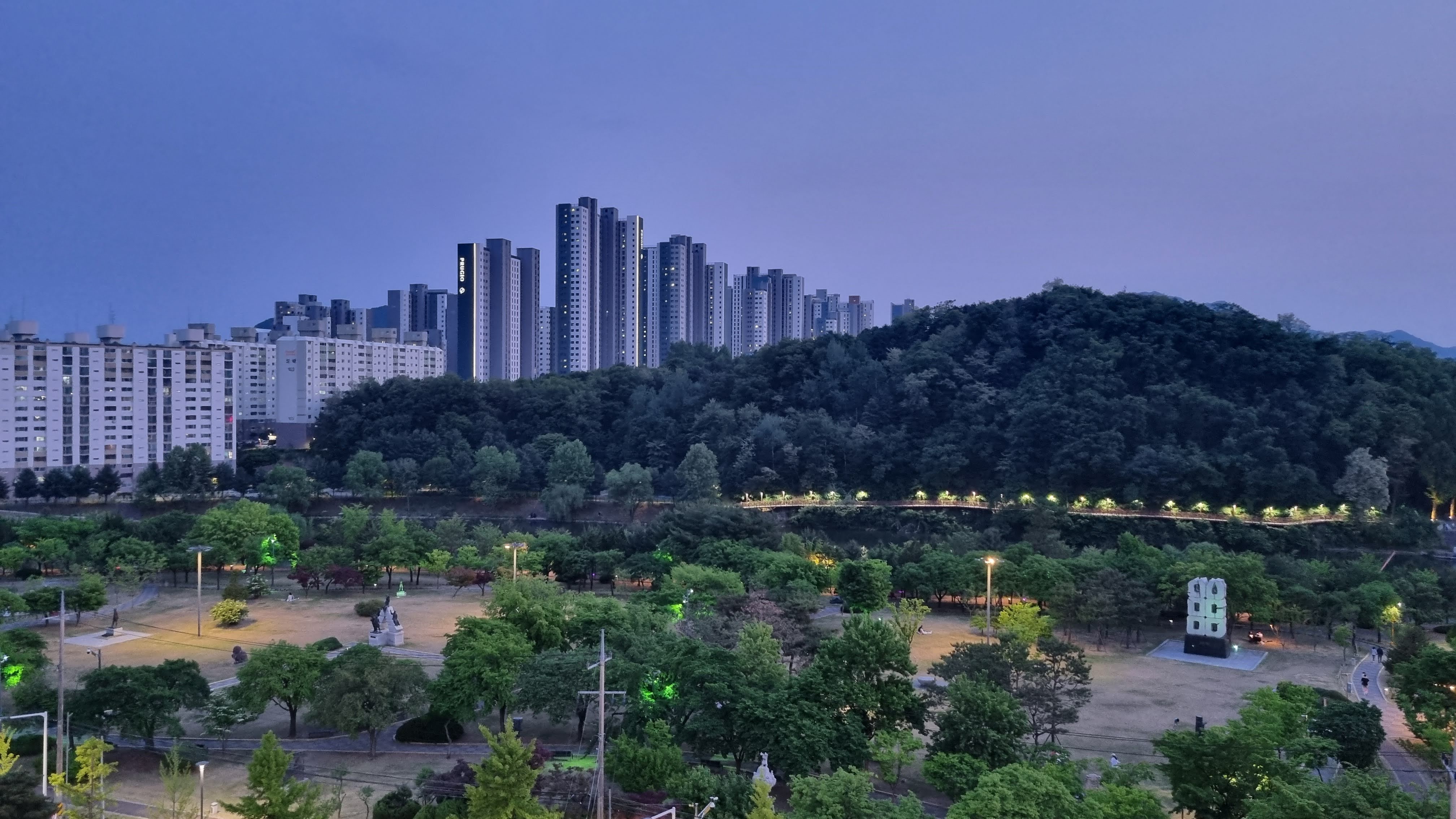 호텔에서 바라 본 공지천 뷰. 멀리 푸르지오 아파트가 우뚝 솟아 있다.