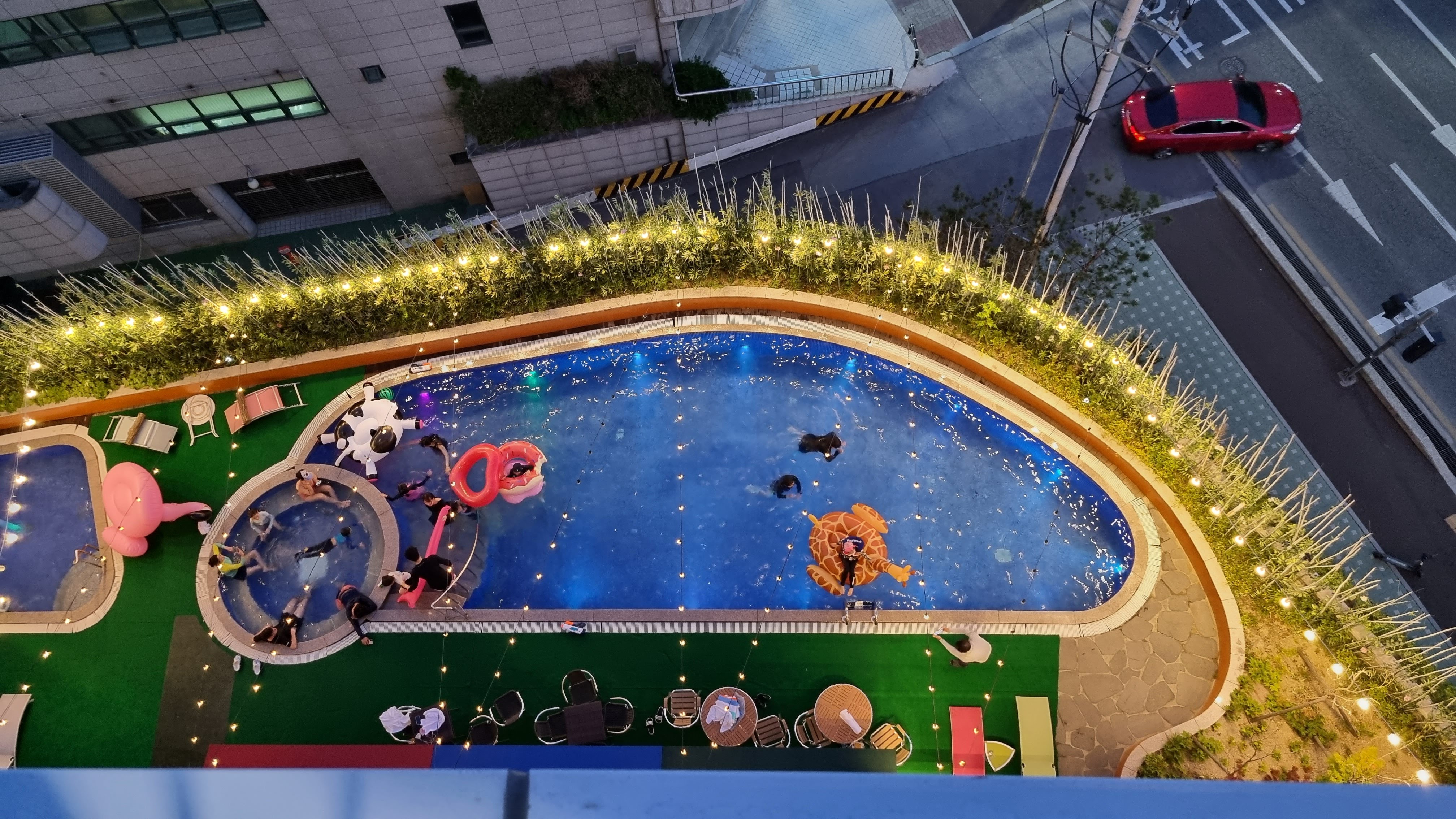 3층에 있는 호텔 수영장. 금토일 운영을 한다. 우리가 갔을때는 저녁에 조금 추웠다. 물속이 따뜻함.