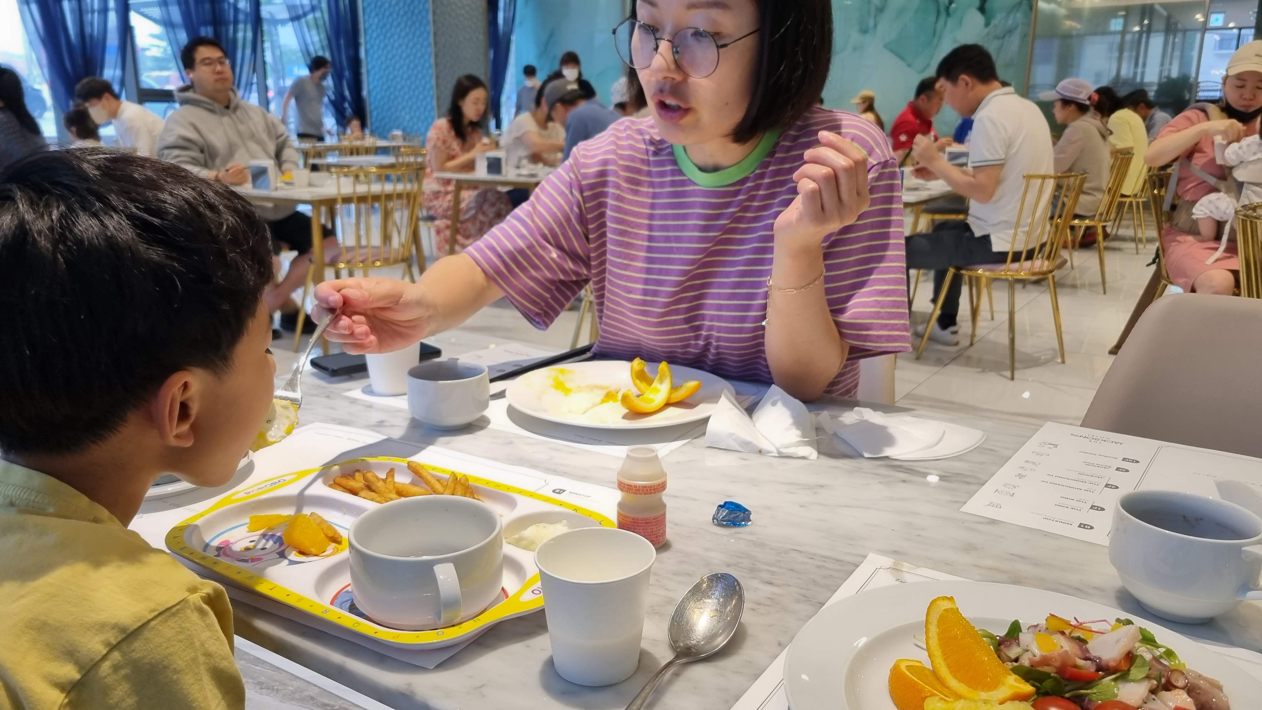 조금 시간이 지나자 우리와 함께 레고랜드를 갈 가족 단위의 관광객들이 많이 계셨다. 아이는 역시 미역국에 쌀밥. 아내는 쌀국수, 나는 연어샐러드에 마파두부와 문어 샐러드 그리고 고구마 샐러드를 조금 담아왔다. 아내는 뷔페 가서 좋다 나쁘다 별로 말을 잘 안 하는데 이번에는 "음! 나쁘지 않은데~~"라는 말을 했다. 나는 좀 음식의 퀄리티나 종류가 좀 떨어지거나 적다고 생각했는데 말이다. 아마도 내가 지불한 가격을 생각은 안한탓일 수도 있겠다. 지금 와서 사진이나 영상을 보니 가격 대비 나쁘지도 않고 그렇다고 너무 좋지도 않은 So! So! 정도라고 생각하는 것이 좋은 듯싶다. 이건 내 생각이니 이 글을 읽는 분들은 아래 영상을 보시고 판단을 해보시는 것이 좋을 것이다. 아래 영상은 5월 22일 아침 조식 뷔페 음식 영상이다.