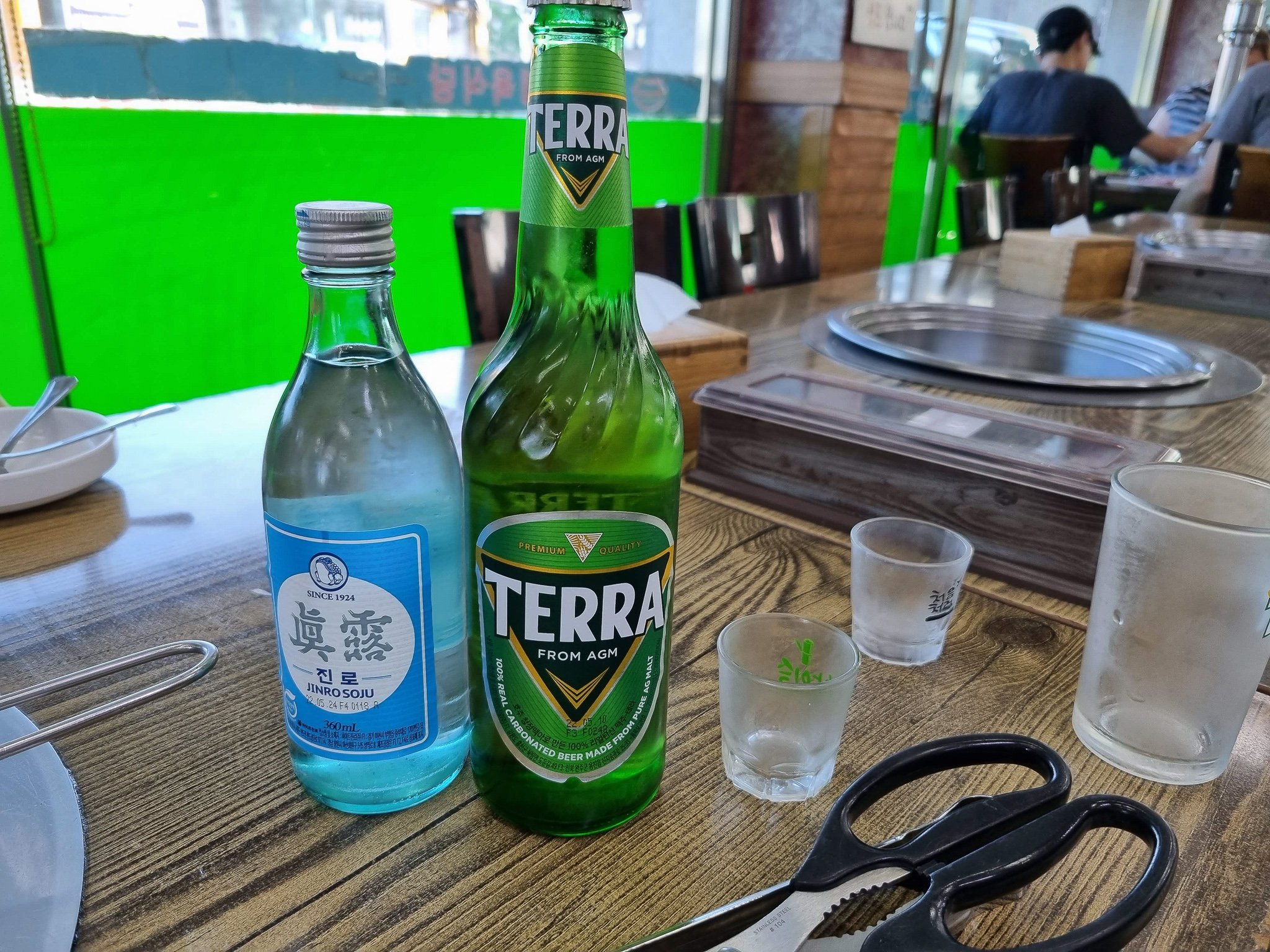 업진살 600g 아 또 먹고 싶다. 와아프도 맛있게 먹었다. 불판이 세팅되어 열이 올라올 때쯤 고기 몇 점을 올렸다. 치~~~ 익 하면서 맛있게 익어가는 소리가 들리기 시작했다. 술을 많이 먹지는 못하지만 소주와 맥주를 시켜 소맥을 말아서 첫 잔을 시원하게 반 잔만 마시고 고기 한 점을 먹었다. 소금에만 찍어 먹었는데 음~~ 나쁘지 않아 맛있어. ㅎㅎ 정말 오랜만에 먹어보는 소고기여서 그런지 게눈 감추듯 입안에서 고소한 육즙을 짧게 남기고 이내 사라졌다.