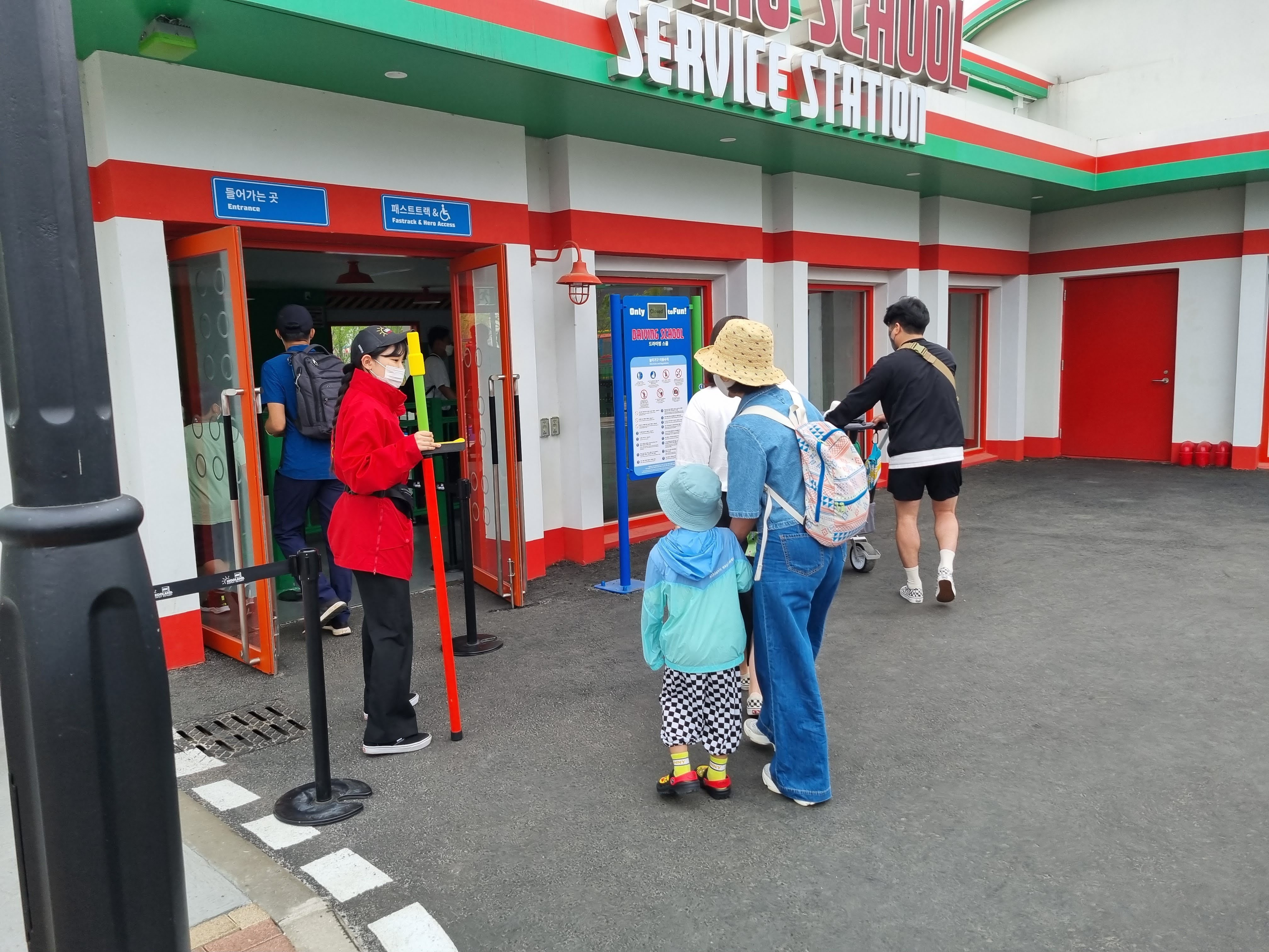 우리는 해상 경비 아카데미를 패스하고 바로 '드라이빙 스쿨'로 향했다. 그런데 아뿔싸 아이 키가 115cm가 안돼서 주니어 드라이빙 스쿨로 강등되었다. ㅎㅎ. 하지만 좀 전에 오픈런을 하면서 넘어졌었는데 아직 아픔이 사그라들지 않았는지 기분이 썩 좋아 보이지 않다. 조금 시간이 지나니 아픔이 조금 가신 듯 컨디션을 회복하기 시작했다.