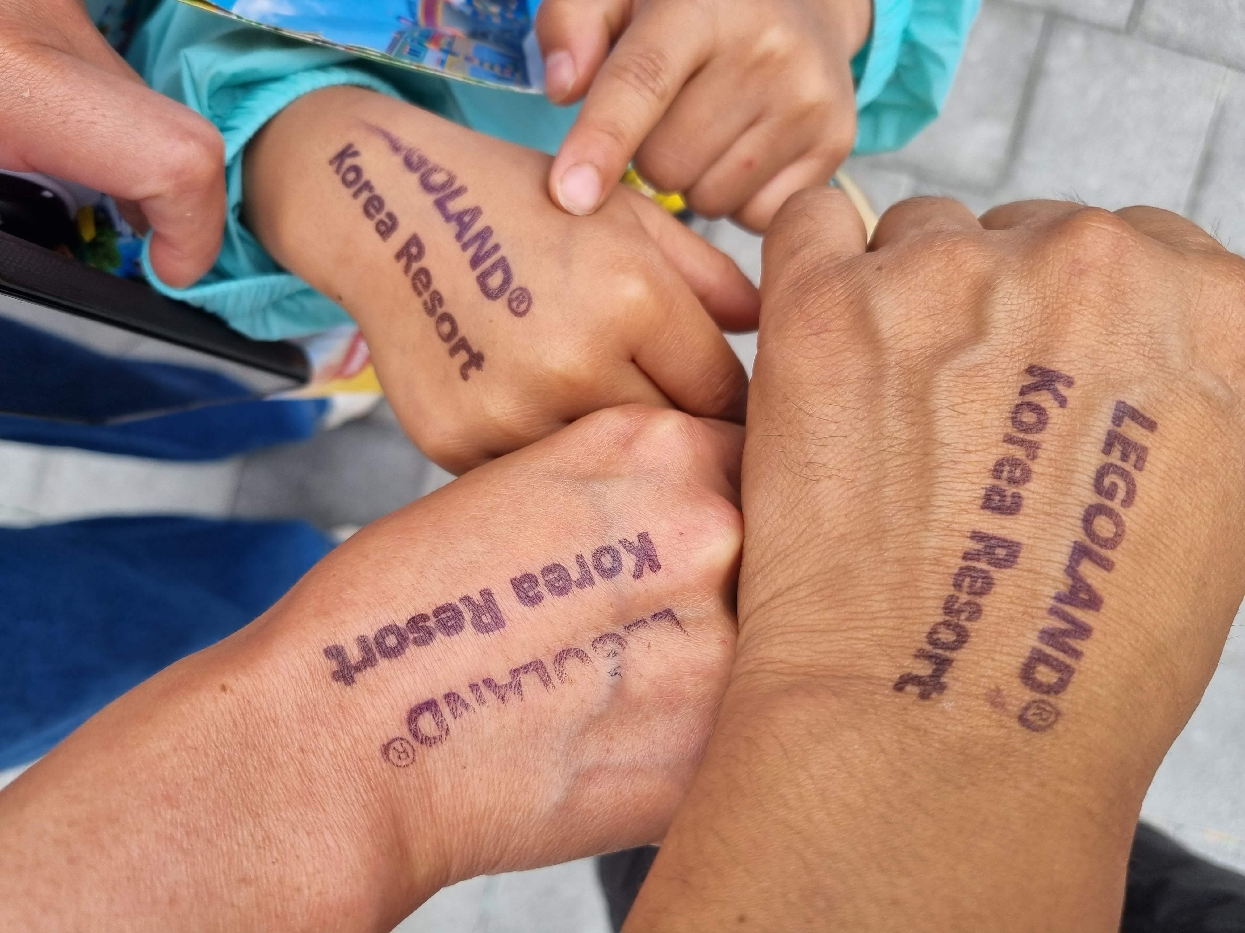 5월 22일 주말 오픈전 상황. 오픈런? 준비. 출발한 지 10분 만에 레고랜드 주차장에 도착했다. 이미 많은 차들이 주차되어 있었으며 주차장에서 레고랜드 정문까지를 도보로 약 5분 정도 이동하면 된다. 정물 셔터를 내려져 있는 상태였으나 많은 사람들이 줄을 서고 있었다. 간단한 소지품 검사 검색대를 통화한 후 직원들이 와서 예약 티켓을 스캔하면 손등 위에 스탬프를 찍어 주는 것으로 발권은 끝이다.