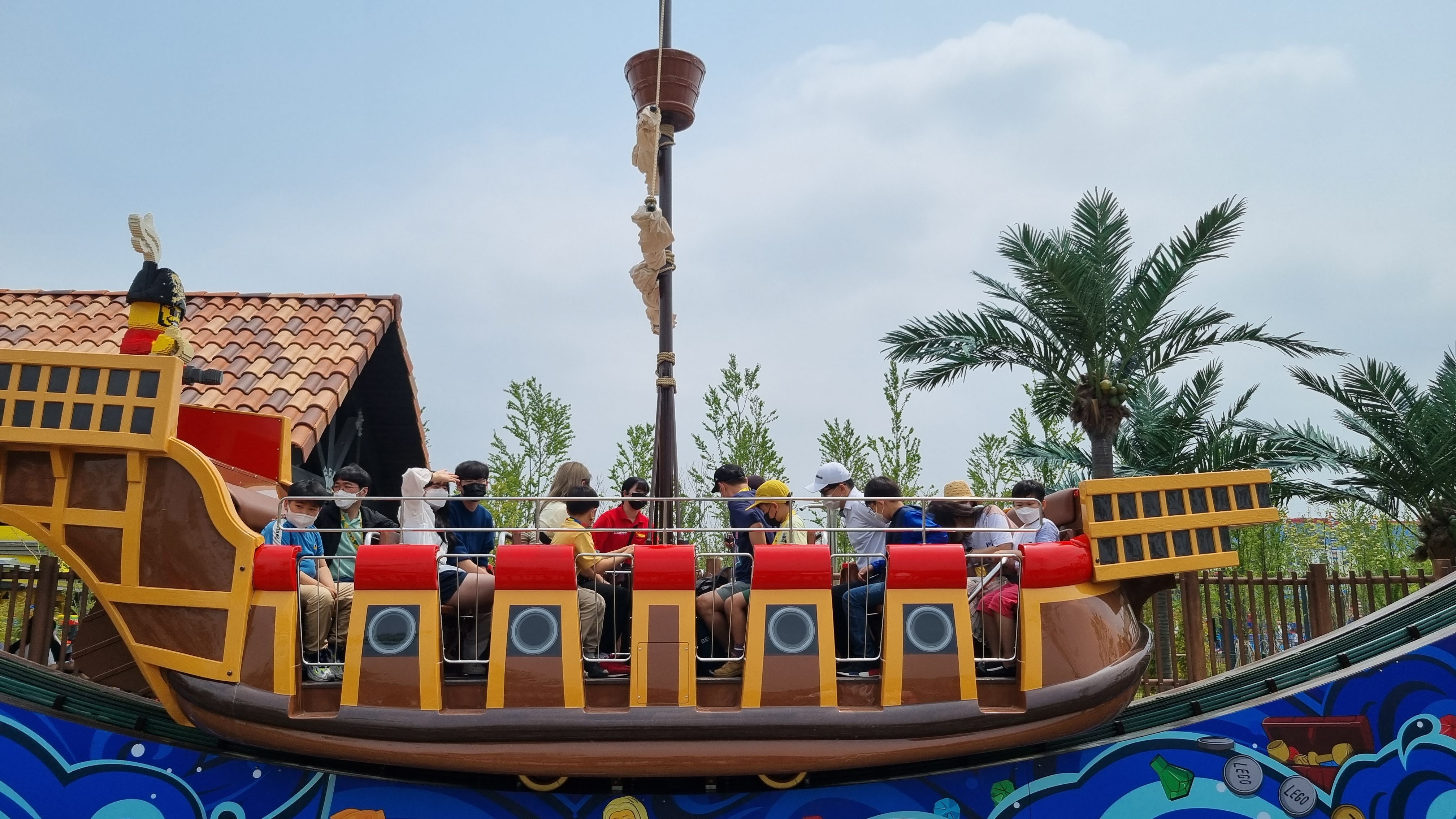개인적으로 가장 재미있었던 곳이 아닌가 합니다. 시기 또한 가장 잘 맞는 곳이기도 하고요. 파이어 아카데미를 지나서 가게 되면 해적의 바다로 들어가게 되는데 그곳에서 처음 만나는 곳이 '스플래쉬 배틀' 입니다. 이곳에서는 꼭 우의가 필요합니다. 뭐 더우신 분들은 그냥 즐기시면 되는데 그래도 옷이 다 젖을 수 있으니 우의(브릭매장에서 구매시 8천원입니다)를 챙기시는데 좋습니다. 저는 안 타고 밖에서 보았는데 주변으로도 탑승객을 공격할 수 있는 물총이 설치되어 있어 타는 사람이나 보는 사람이나 모두 즐겁게 참여할 수 있습니다. 아내와 아이는 2번이나 탔을 정도로 만족도나 즐거움이 큽니다. 물 맞는 것을 포기하면 더 즐거우니 참고하시기 바랍니다. 배틀에 설치된 물총이 좀 더 길게 나가니 밖에서 물을 많이 맞을 수도 있습니다.