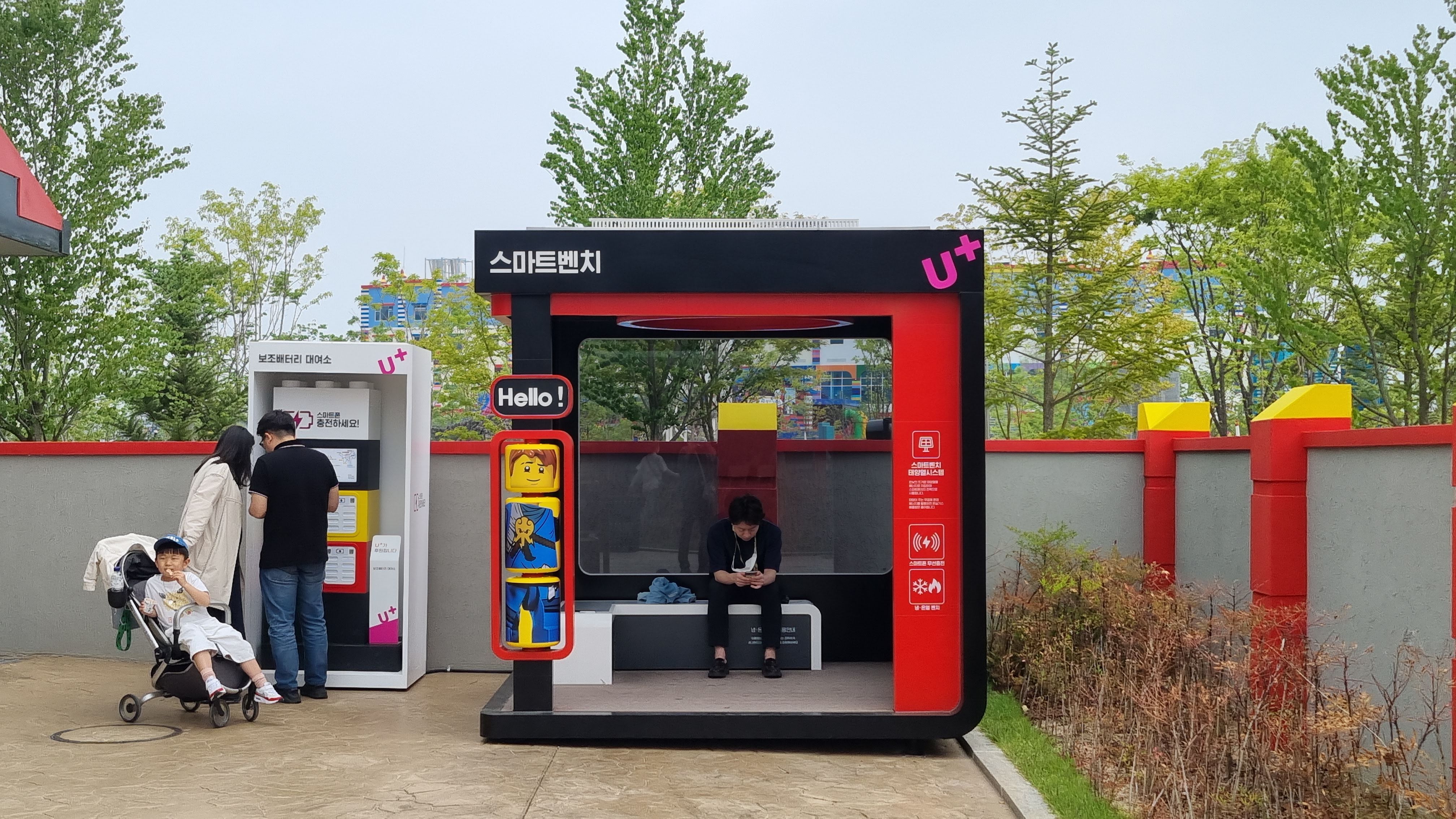 마지막 코스인 브린토리아 입니다. 아이와 아내가 레고 캐슬에 있는 동안 전 먼저 와서 전망대 줄을 서기 전에 핸드폰을 충전시키기도 했습니다. '스마트벤치'라는 곳이 있는데 중간중간 보입니다. 핸드폰 충전도 무선으로 가능하고 보조배터리도 대여가 가능합니다.