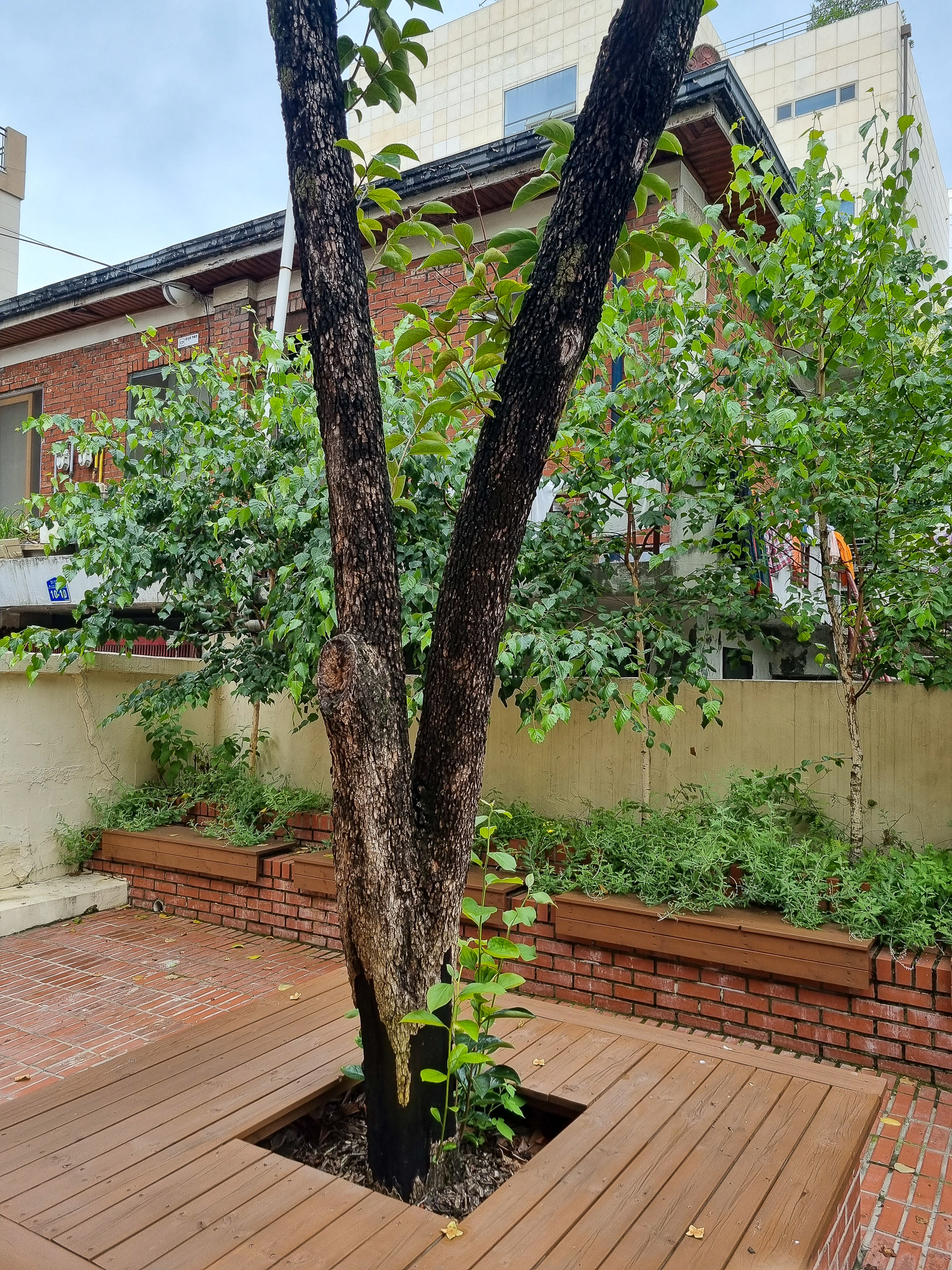 마당 앞 감나무 와 자작나무! 마당 정원을 좀 더 잘 관리하면 더 좋지 않을까 한다. 마지막으로 가던 길을 멈추고 다시 돌아본 당인리 책발전소의 세로로 된 간판과 벽에 달린 조명이 왠지 더 정겨워 보였다.