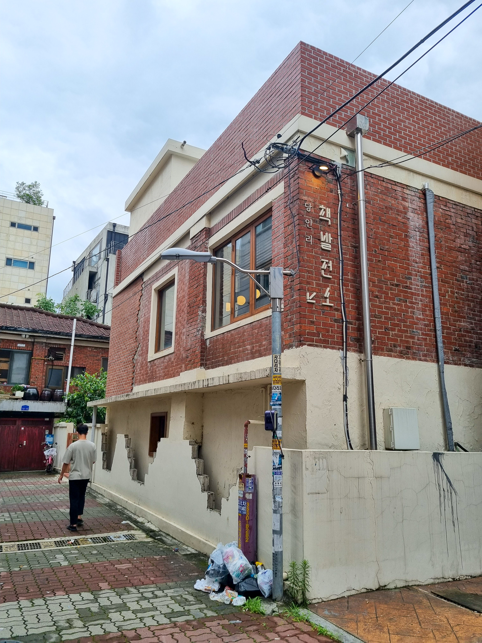 합정역 1번 출구를 나와 얼마 지나지 않아 당인리 책발전소를 찾을 수 있었다. 대로변에서도 들어가는 입구도 있고 골목 쪽에서 들어가는 입구도 있다. 위치 잘 잡았네 하는 생각이 든다. 골목 쪽으로 들어가는데 옆 빌라에 사시는 분이 쓰레기봉투를 내어 나오다 낯선 남자인 나를 보고 놀라는 것 같았다. 놀라긴 나도 마찬가지였다. 그 여자분은 레깅스 차림이었는데 요즘 많이 볼 수 있는 패션이긴 하지만 나는 사실 그렇게 탐탁하지 않다(나는 꼰대인가?).