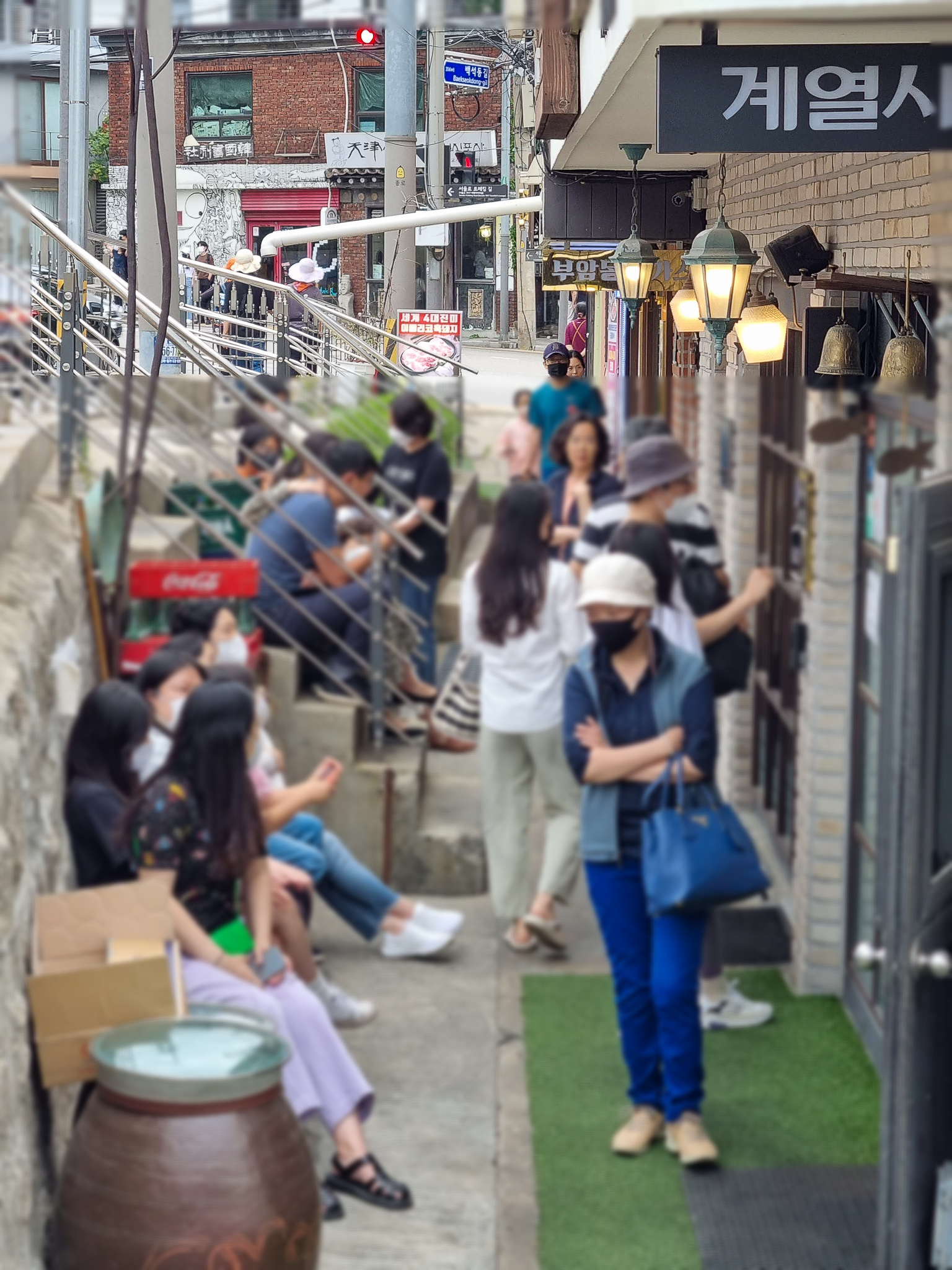어찌어찌 주차를 하고 계열사를 찾아갔는데 일요일 오후 4시 정도였지만 이미 가게 안은 만석이었고 대기표를 받아야 했다. 대기 시스템이 좋아 이름과 전화번호를 입력하면 현재 대기순서 또 그 순서가 되면 카톡으로 알람을 받고 들어가면 된다. 잠시 대기하면서 부암동 경치를 감상하는데 바로 앞에 미슐랭 맛집인 '자하 손만두' 있지 않은가? 주차도 가능해서 다음에 오기로 했다(포장하고 싶을걸 참았다).