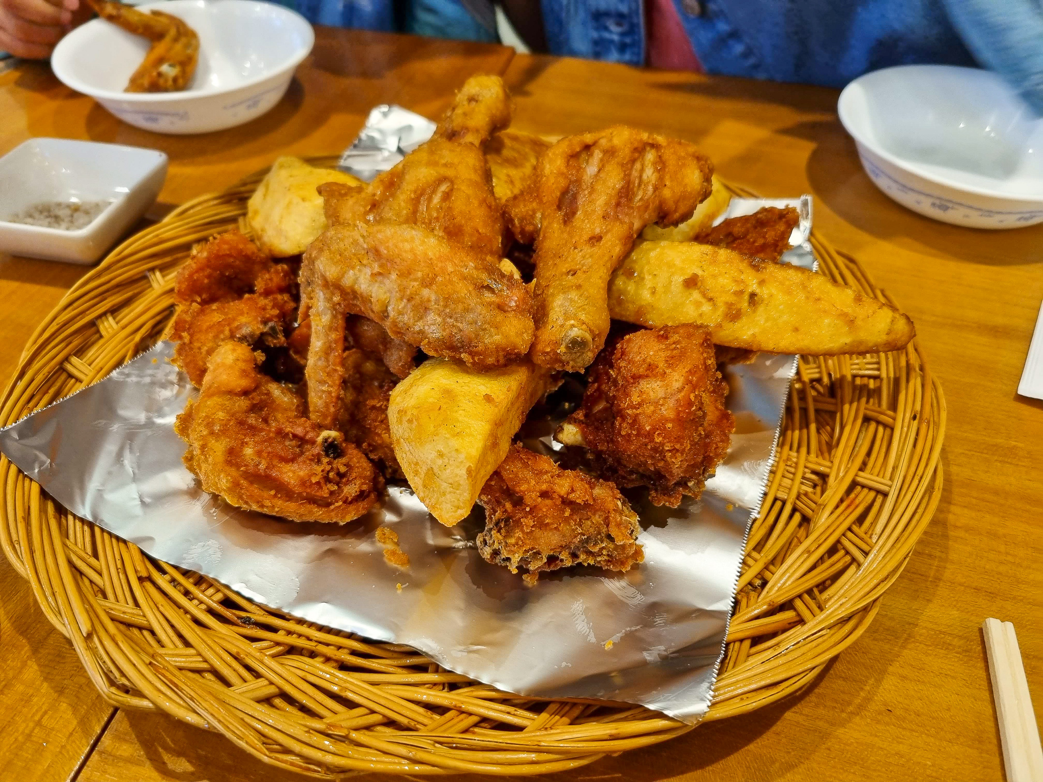 매장 앞에 기다리다 대기번호가 호명되어 안내를 받고 1층에 자리를 잡았다. 메뉴는 이미 대기표를 넣을 때 주문을 완료했기 때문에 자리에 앉아 있으면 음식이 나오는 시스템이다. 이미 많은 사람들이 후라이드 치킨을 먹으머 즐거워하고 있었다. 기다리며 잠시 보니 포장을 해가는 사람도 많았으며 지하층도 사람들로 모두 만석이었다. 1층 카운터에서 진두지휘 하시는 할머님이 계셨는데 이분이 주인장인 것 같았다! 카운터 바로 앞에 자리해서 우연히 듣긴 했지만 주문이 밀려들어오니 홀과 주방의 트러블도 들리곤 했다! 다 사람 사는 것 똑같다.