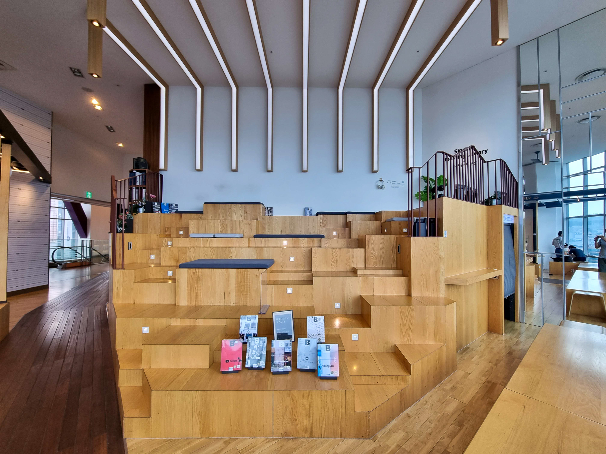 12층으로 올라가니 정면에 우드 책장을 배경 삼아 강렬한 나무 질감의 아크앤북 로고가 나를 맞이했다. 나무가 주는 편안함을 잘 살려 인테리어를 한 것 같다. 아크앤북을 운영하는 곳이 공간 플랫폼 전문기업은 OTD코퍼레이션이라는 곳인데 요즘 보면 이곳저곳 많은 공간을 꾸미고 있는 것으로 보인다.