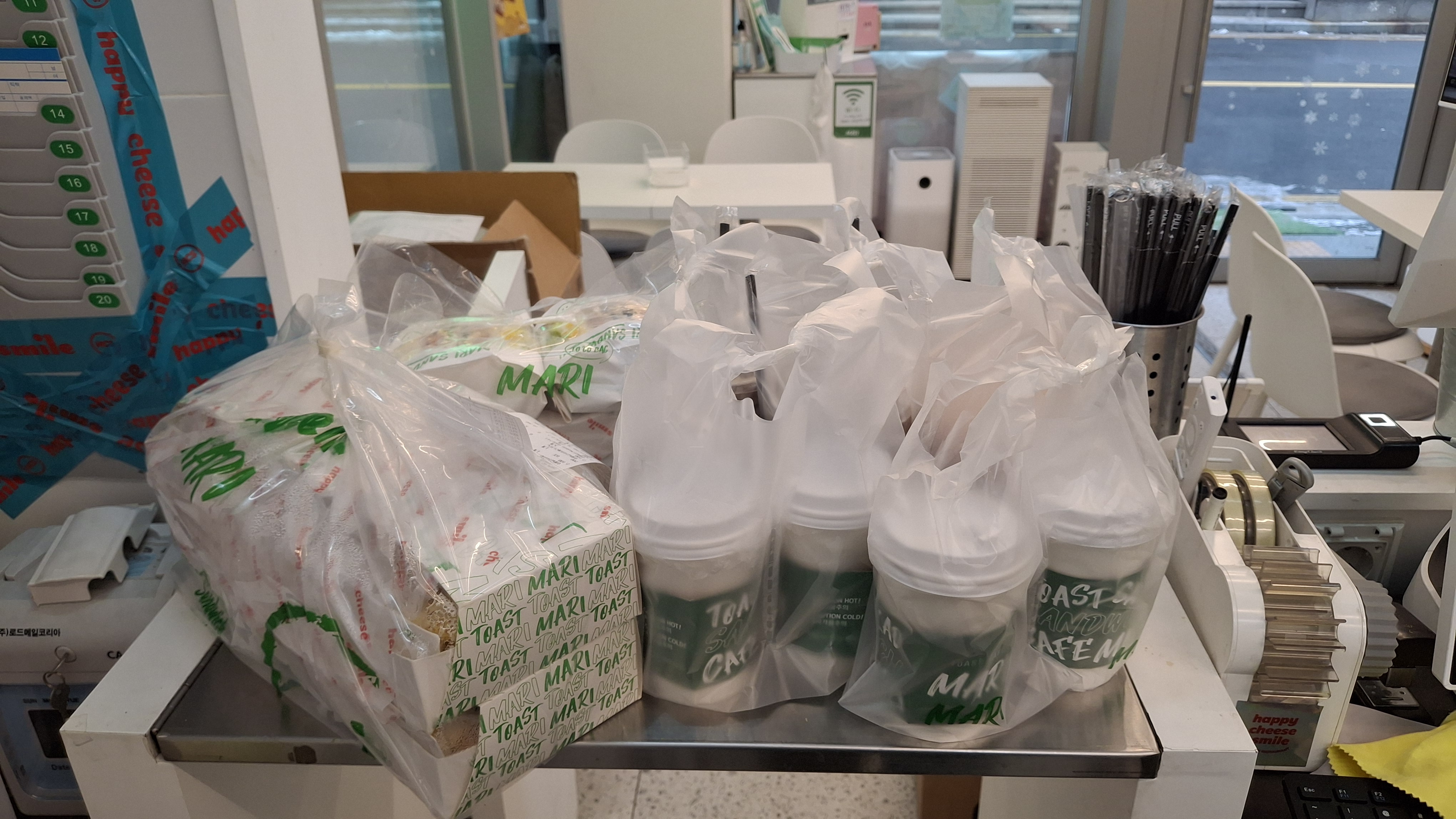 단체주문을 가끔 하는 우리 동네 '코끼리유치원'에서 주문이 왔다. 어제 전화 주문을 받았고 오늘 아침 9시 30분까지 배달하면 된다. 아침 6시 카페에 출근해 서둘러 오픈 준비를 한다. 토스트카페마리는 메뉴가 다양해서 이것저것 준비해야 할 것이 많다. 신선야채도 항상 준비해야 하는 관계로 재고관리에 특히 신경을 써야 한다. 이제 만 3년 차에 접어들어서 그런지 수월하지만 처음에는 정말 힘들게 장사를 했었다.