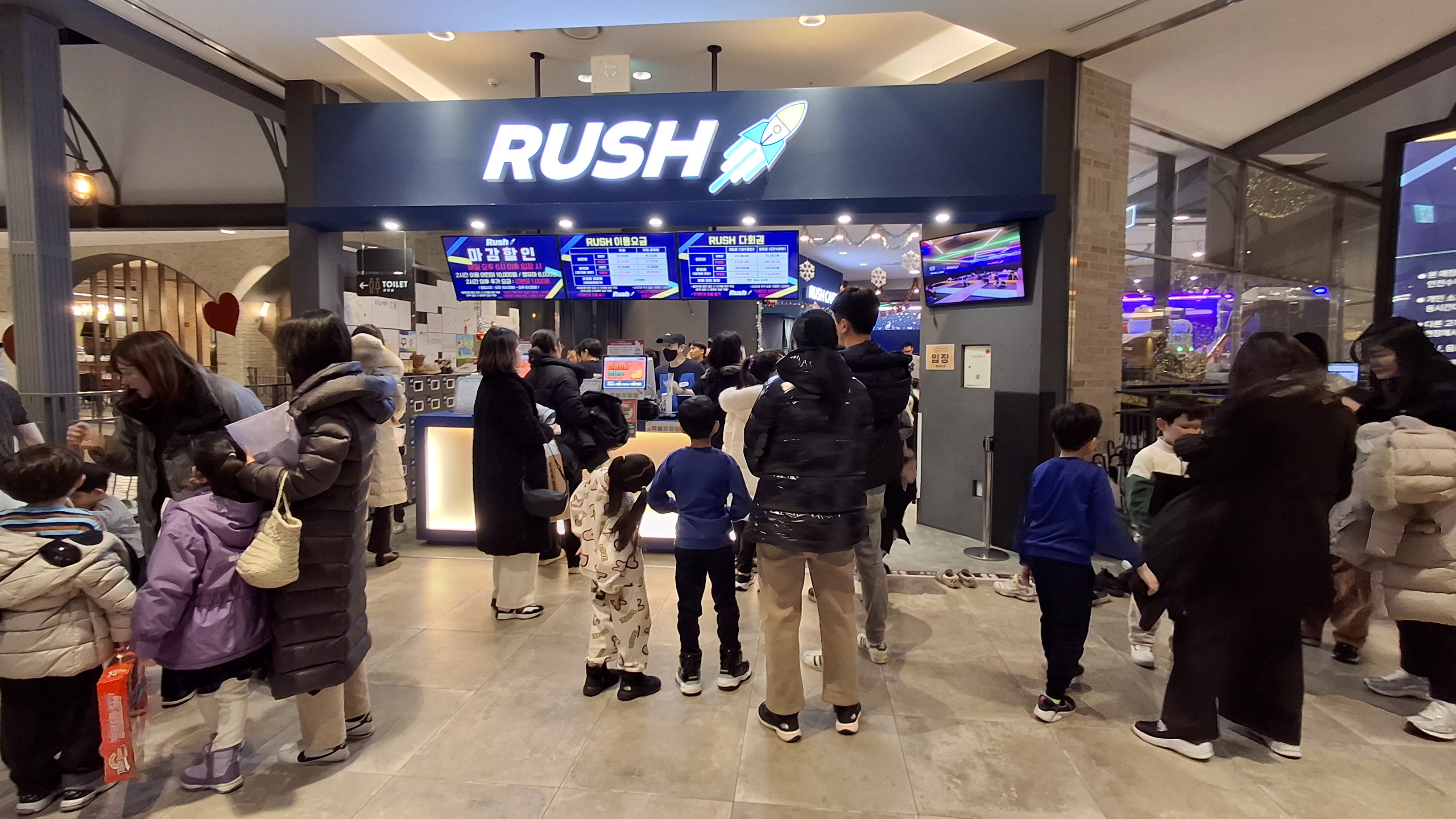 벨라시타 러쉬. 저녁 6시 이후에는 마감할인으로 1만원으로 2시간 놀이를 할 수 있다. 6시 15분 들어가려는 사람들로 인산인해.