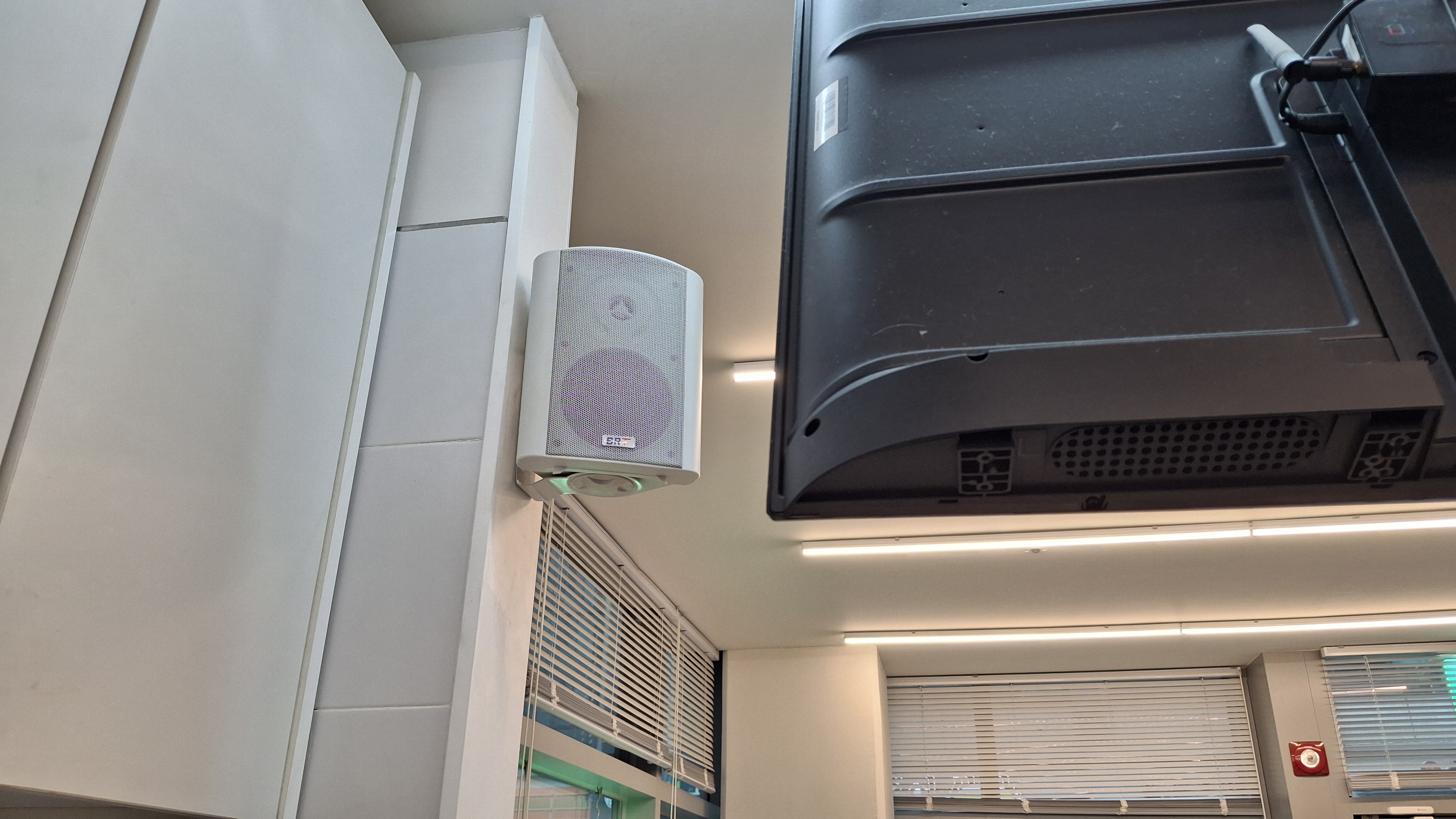 원래 스피커는 기둥 바깥쪽에 천정에 홀을 보고 있었는데 오늘 주방쪽으로 내려서 달아 놓았다.