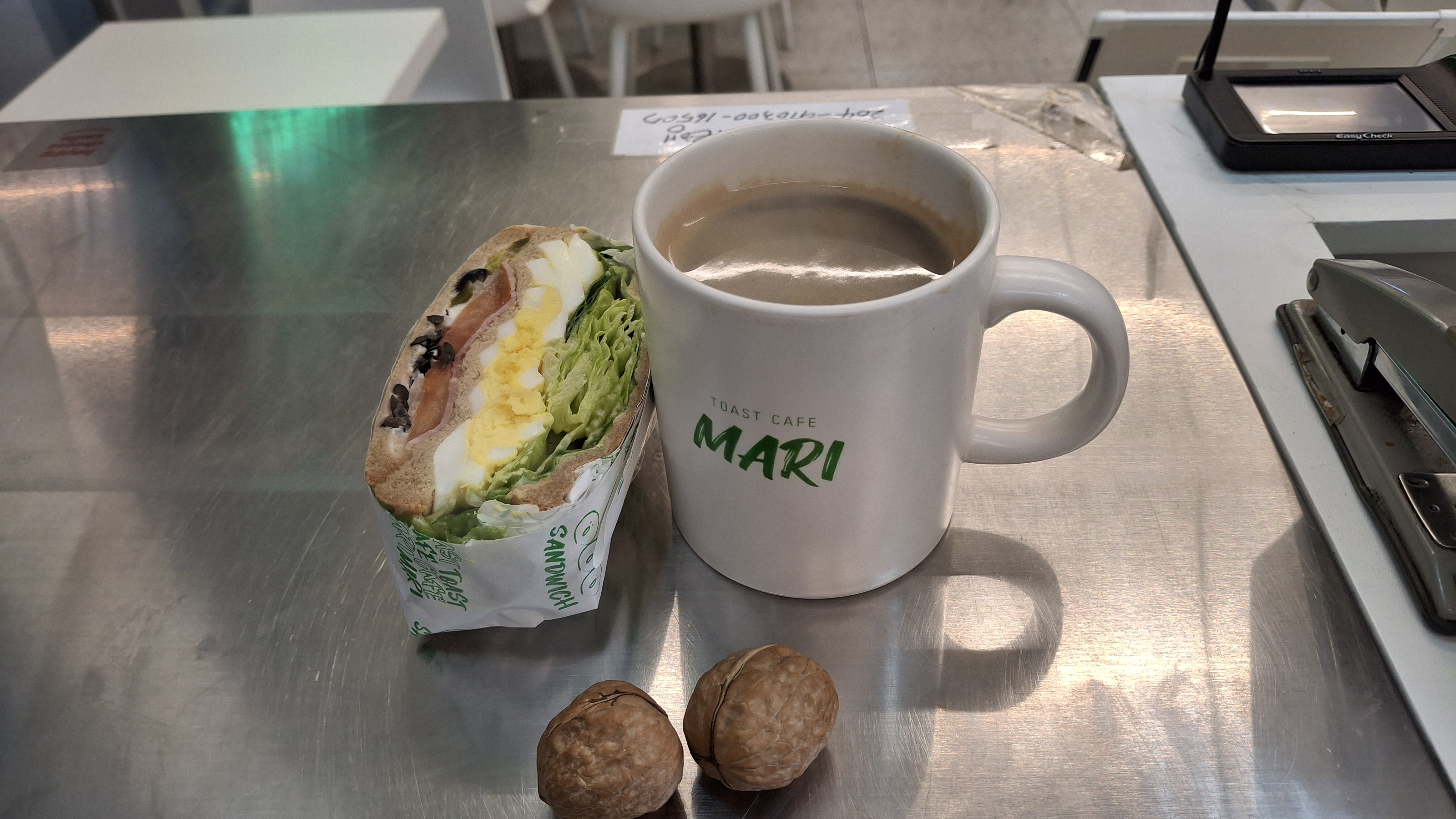 어제 영수증을 잘 못 봐서 샌드위치를 2개 만들어 하나는 오후에 팔릴려나 해는데 주문이 안들어와서 오늘 아침으로 먹었다. 오늘 아침은 어제 정신없어 잘못 만든 BLT 샌드위치다. 식빵은 플레인 식빵이 아니라 호밀이다. 건강해지는 맛이다. 당뇨병을 잠시 잊고 살았는데 이제 음식도 가려먹어야 할 처지가 되었다. 아직도 당뇨병으로 고생하시는 아버님은 매일 인슐린을 맞고 계신다. 점심이 되기전 오전 카페 나에게는 조금 여유가 있는 시간이다. 당뇨를 생각하다 담배를 피우는 것에 대해서도 생각했다. 오늘이 마지막이다. 다시 한번 금연을 결심한다(정말 금연을 해야한다). 장사를 시작하고 얼마 되지 않아 스트레스 때문에 5~6년 금연했던 것을 못 참고 다시 담배를 피웠었다. 이 참에 다시 금연을 시작하려 한다. 마지막 담배 한 개비(오늘 아침 13일 5시 55분까지는 아직 금연 중이다)를 피우고 전자담배를 금전통에 고이 놓아드렸다.