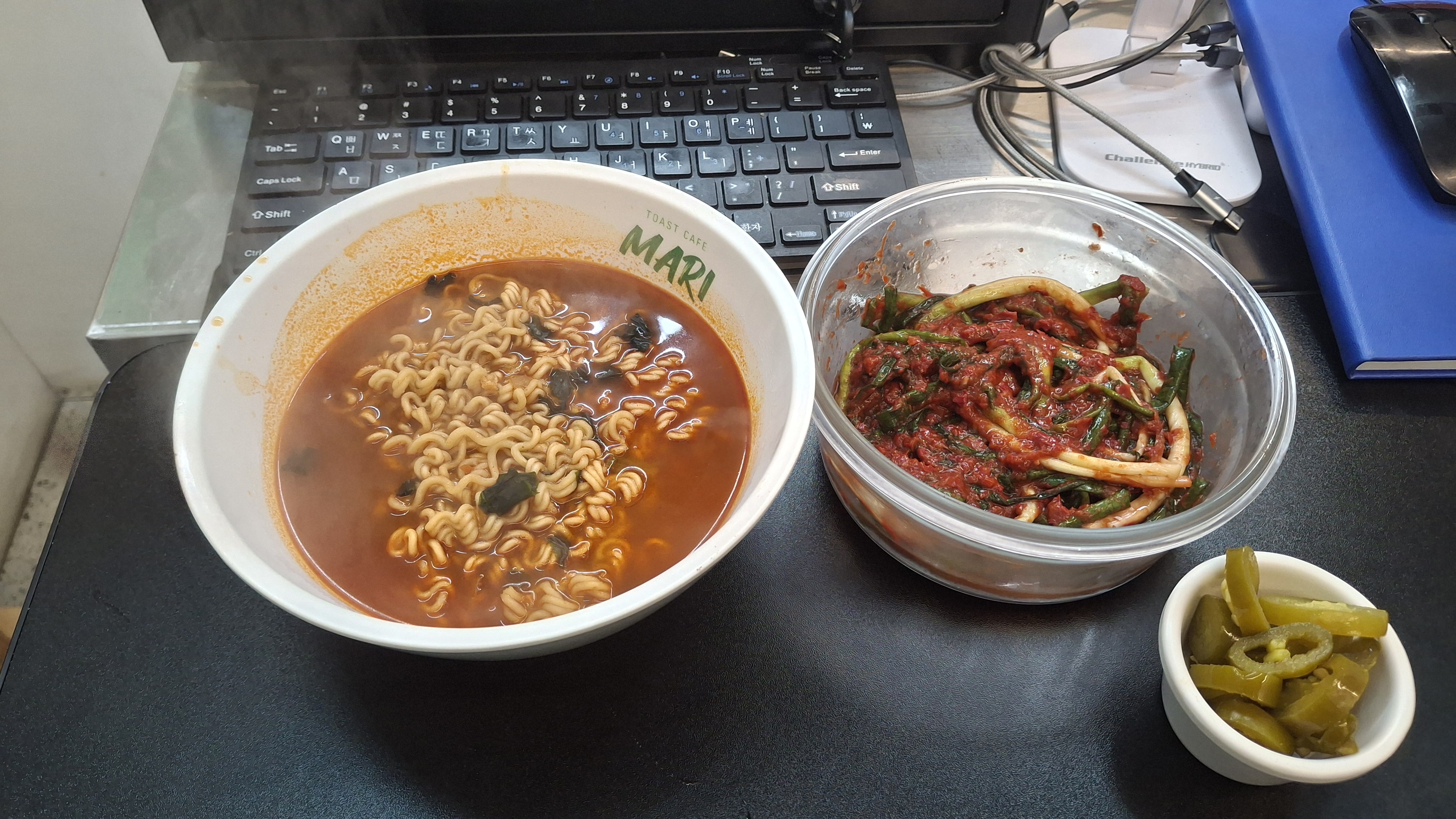 늦은 점심으로 라면을 먹었다. 오후 3시 15분 늦은 점심을 먹는다. 배가 고프면 햄치즈 토스트를 하나 먹곤 했는데 오늘은 시간이 없어서 이제야 밥을 먹는다. 장사하면서 제대로 된 식사를 챙겨 먹은 기억이 별로 없다. 항상 남은 음식이나 재료 준비하면서 매장 메뉴를 간단하게 만들어 먹는다. 내가 선택한 것이니 잘 돼야 할 텐데 50이 넘어갈수록 먹고사는 문제가 쉽지 않아 진다.