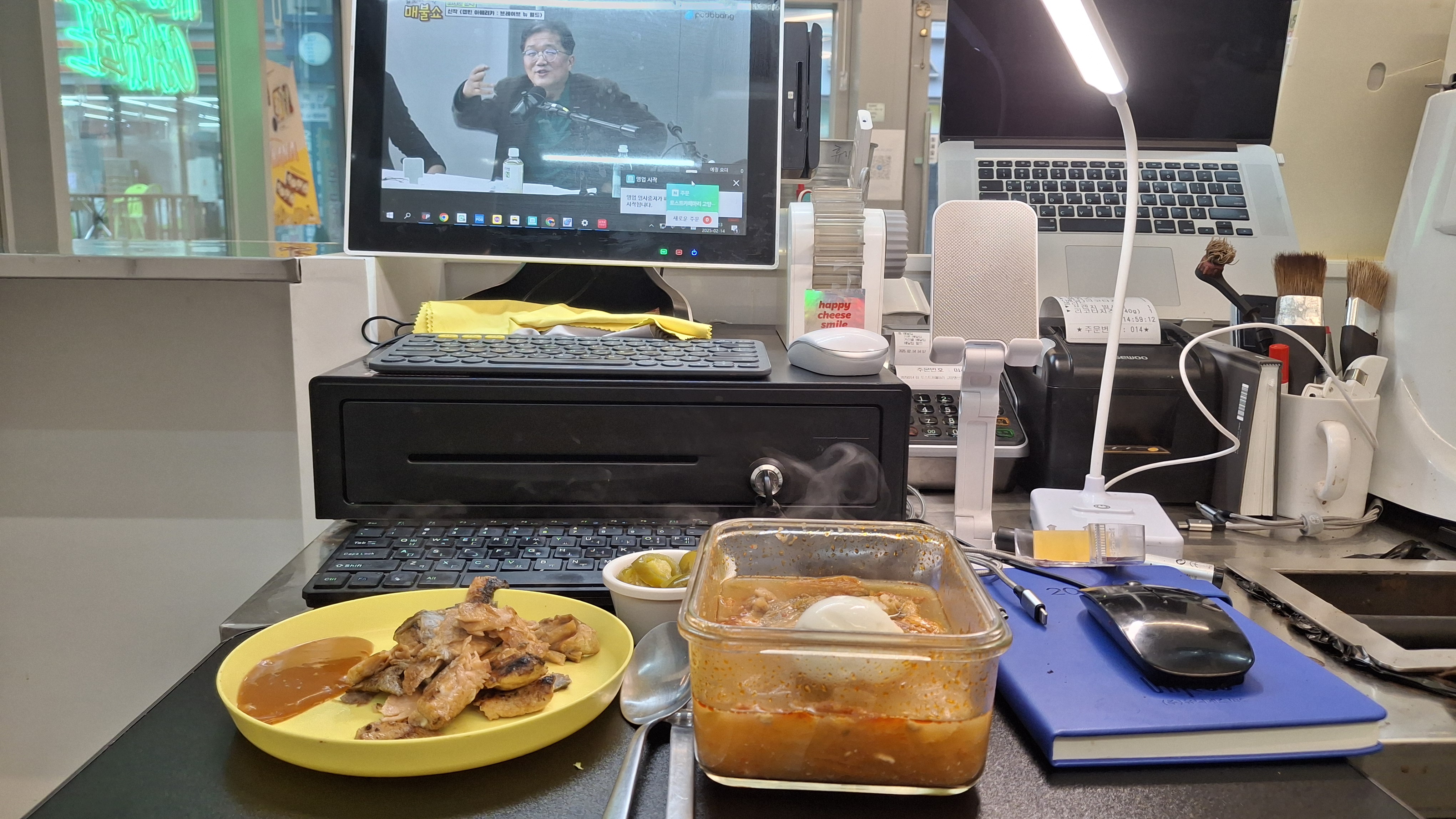 진료를 받으 후 매장에서 먹는 늦은 식사. 연어 스테이크와 아내표 김치찌게... 유튜브는 매불쇼. ㅎ 아버님댁에 밥통과 전자레인지, 전기포트를 연결하는 콘센트가 오래되었는지 고장 나서 아버님의 제일 중요한 전기 제품들이 안된다며 오늘 제일 바쁜 점심시간에 전화가 오셨었다. 집에서 저녁을 먹고 아버님댁으로 바로 가서 콘센트를 교체해 드렸다. 이제 아버님은 보호자가 없으면 불편하신 몸이 되었다. 아버님도 혈압과 당뇨로 몇십 년째 약을 드시고 요즘도 매일 인슐린을 맞으신다. 나도 건광관리를 지금부터라도 잘해야 되는데 아버님과 똑같은 질별을 갖게 되었다. 설마 내 아들아이도?