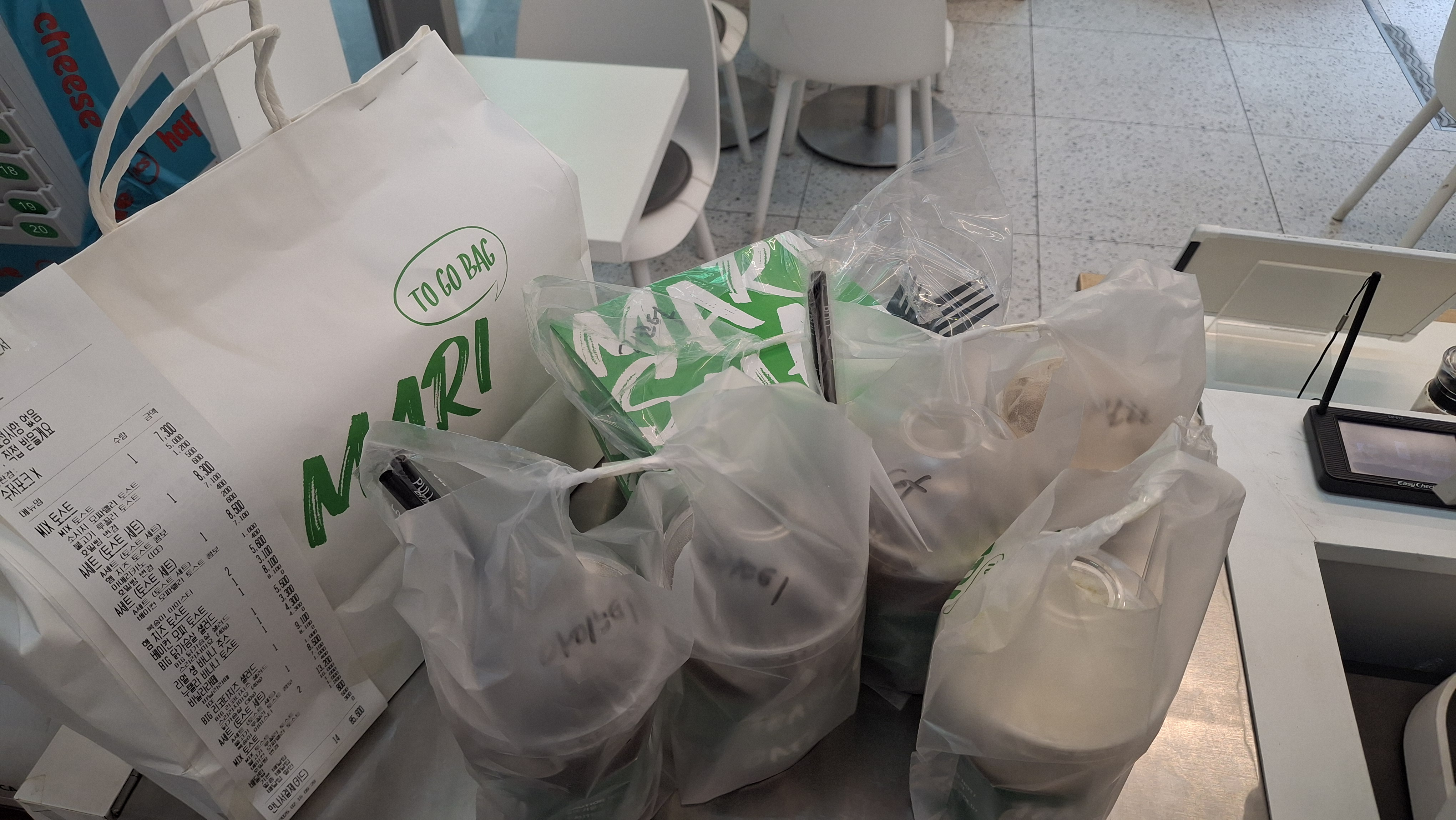 토요일은 바쁜 날도 있고 그렇지 않은 날도 있다. 주말과 공휴일은 무조건 오후 3시까지만 영업을 한다. 토스트와 샌드위치를 파는 매장이라 저녁에는 그닥 손님들이 많이 찾지 않는다. 이른 아침부터 점심시간까지가 피크 타임이다. 오전 9시 30분 배민 주문이 들어온다. 금액을 보니 8만 원이 넘어간다. 혼자서 1시간에 10만 원 매출을 올리면 정말 바쁜 것이다. 바로 배달 어플 영업정지를 하고 어디에서 시켰는지 확인한다. 지난주에 주무을 받지 못했던 '시카고 치과'다. 이번 주에는 점심시간도 아닌데 일찍 주문하시는 걸 보니 지난주에 많이 섭섭하셨나 보다. ㅎㅎ. 시카고 치과의 주문을 정말 다양하게 시킨다는 것이다. 샐러드, 토스트, 음료까지 혼자서 하기 벅찰 정도로 시킨다. 지금이야 경력이 되다 보니 수월한데 1년 전만 해도 아르바이트생이 없으면 하지도 못했을 것이다.