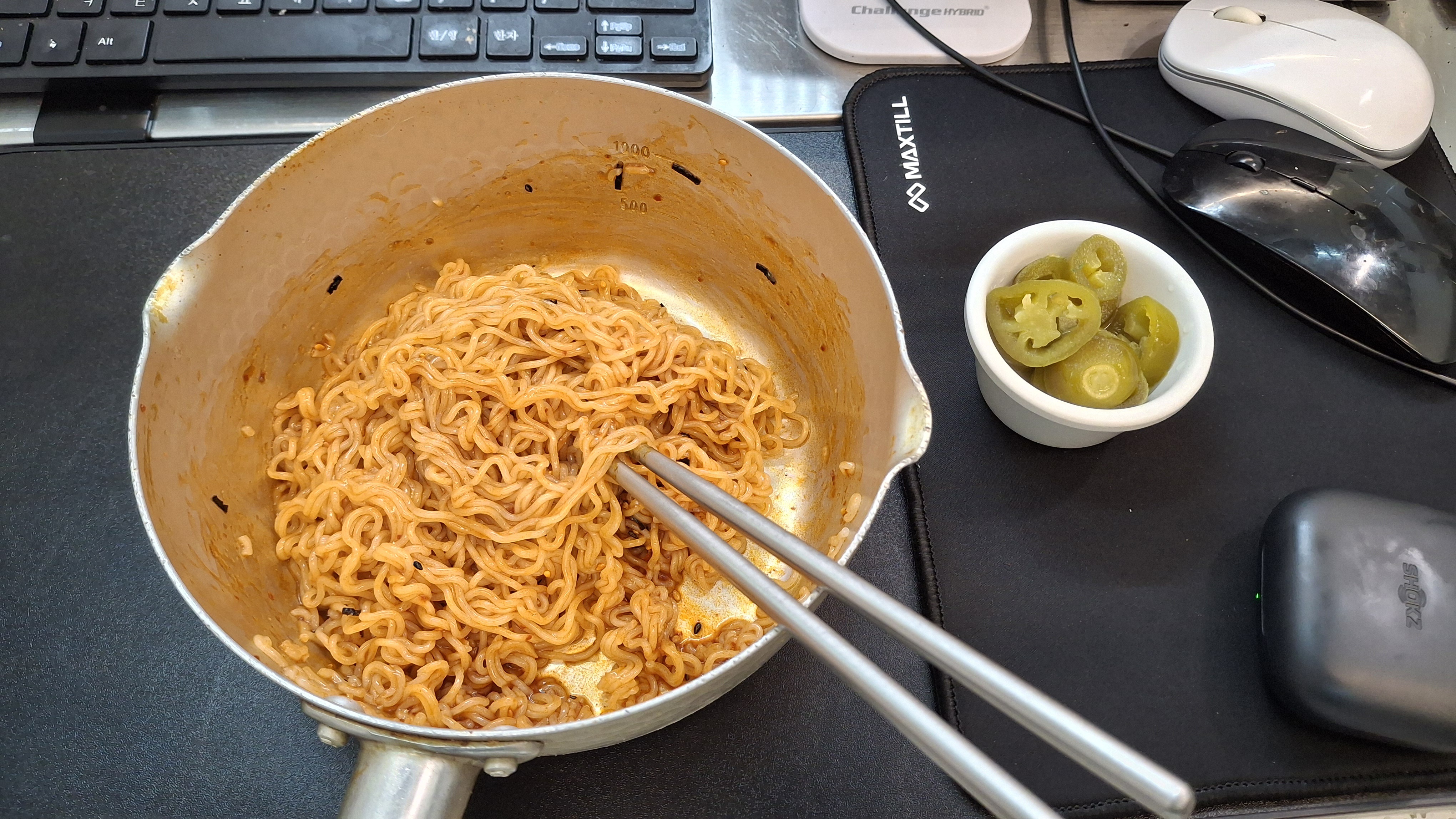 오늘 점심은 장사도 안되고 해서 간단한 비빔면과 햄치즈 토스트로 해결했다.