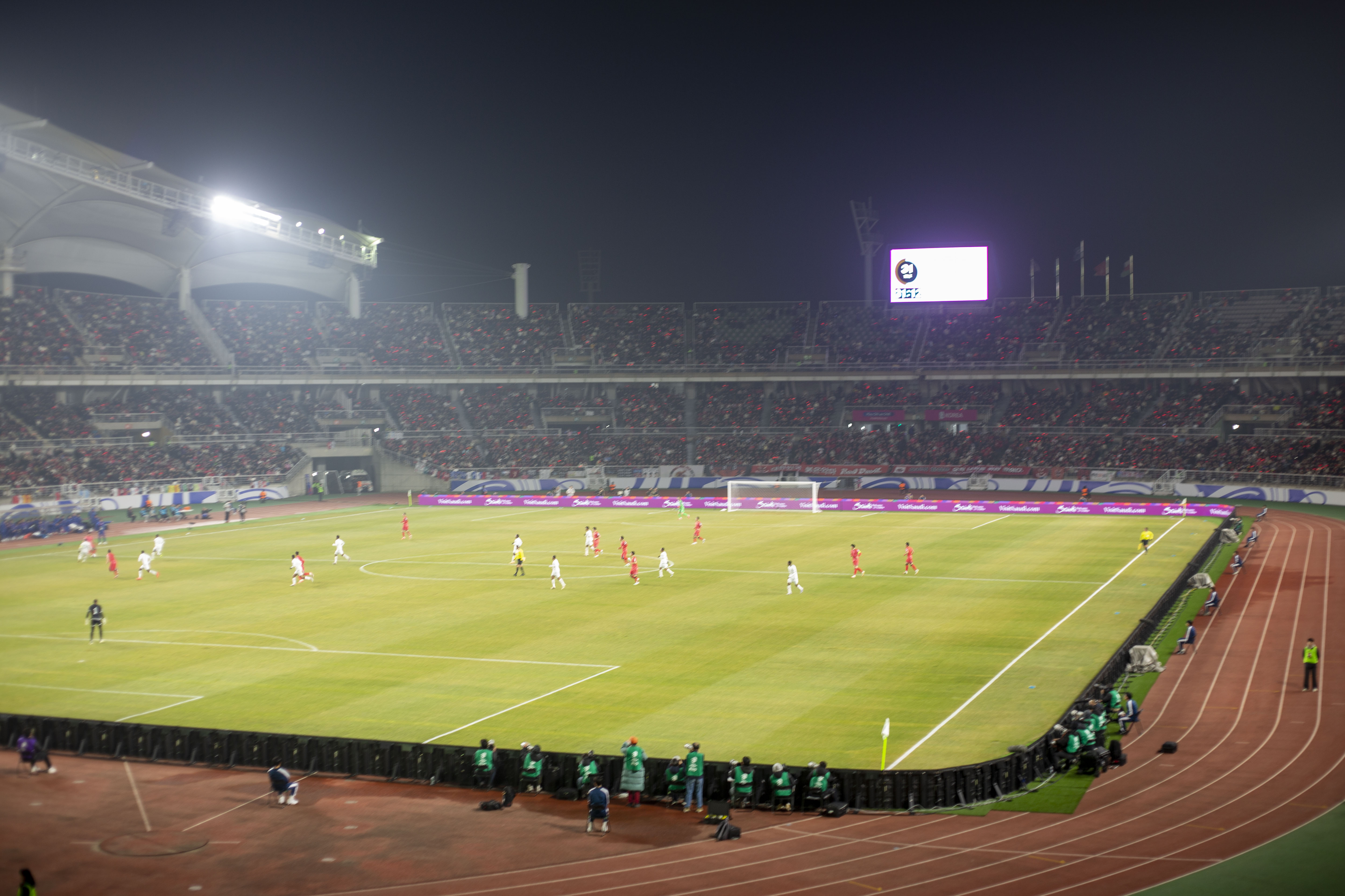 S2 22열 에서 보는 시각. 그렇게 나쁘지 않다. 다만 후반전에는 우리 공격을 잘 볼 수 없다는 점. 입장은 편하게 모바일티켓으로 입장권 교환없이 들어갈 수 있었다. 다만, 입장 전 물병이나 음료수의 병뚜껑을 제거하고 들어갔다. 우리 좌석은 S2 22열 9,10,11번이다. 2등석 맨 뒷자리였다. 남측 관람석으로 다 좋았는데 대형 전광판 바로 밑에 있다는 것이 흠이었다. 고양종합운동장이 큰 편이 아니러서 그런지 우리 관람석에서도 축구장이 크게 보였다. 경기는 쉽게 이길 줄 알았는데 1대 1로 비기고 말았다. 아쉬웠지만 나름 재미있는 시간이었다. 아들아이는 큰 기대를 하고 축구국가대표가 이기는 경기를 보고 싶어 했는지 경기가 끝난 후 차있는 곳으로 걸어가는 내내 분하다고 속내를 털어놓았다. ㅎㅎ