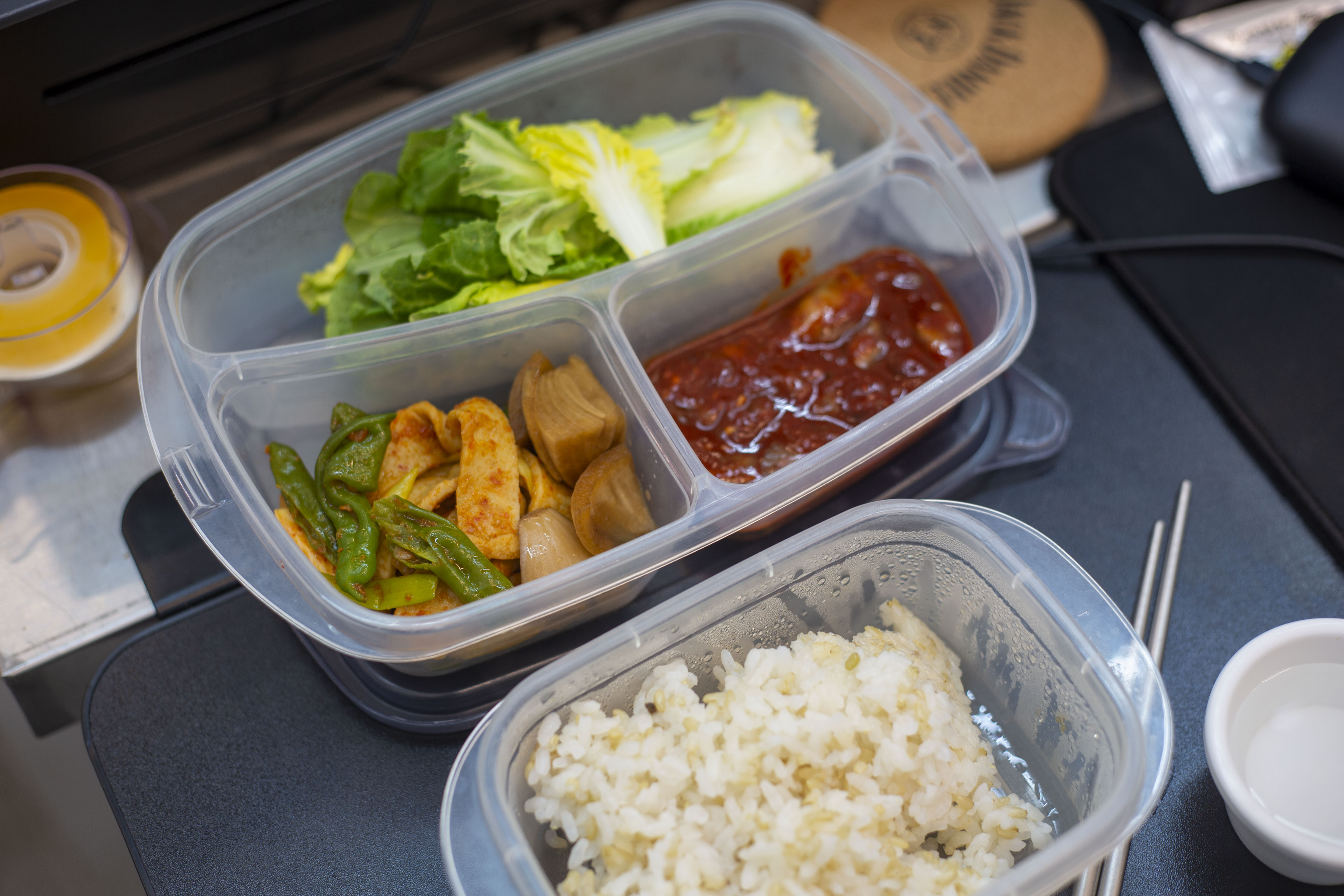 오늘 점심은 아내가 도시락을 가져왔다. 가끔 본인이 일을 하러 가기 전 마리에 들려 카페라떼를 가져가는데 가끔 도시락을 전해주고 간다. 요즘 살이 쪄서 탄수화물을 안 먹으려 하는데 아내는 밥을 꼭 갖다 준다. 밥을 먹기 시작하면 계속 먹게 된다. 요즘 살이 평소보다 5kg 이상 쪄서 사진을 찍으면 얼굴이 거의 눈뜨고 봐줄 수 없는 지경까지 왔다. 다이어트는 내 평생의 숙제다.
