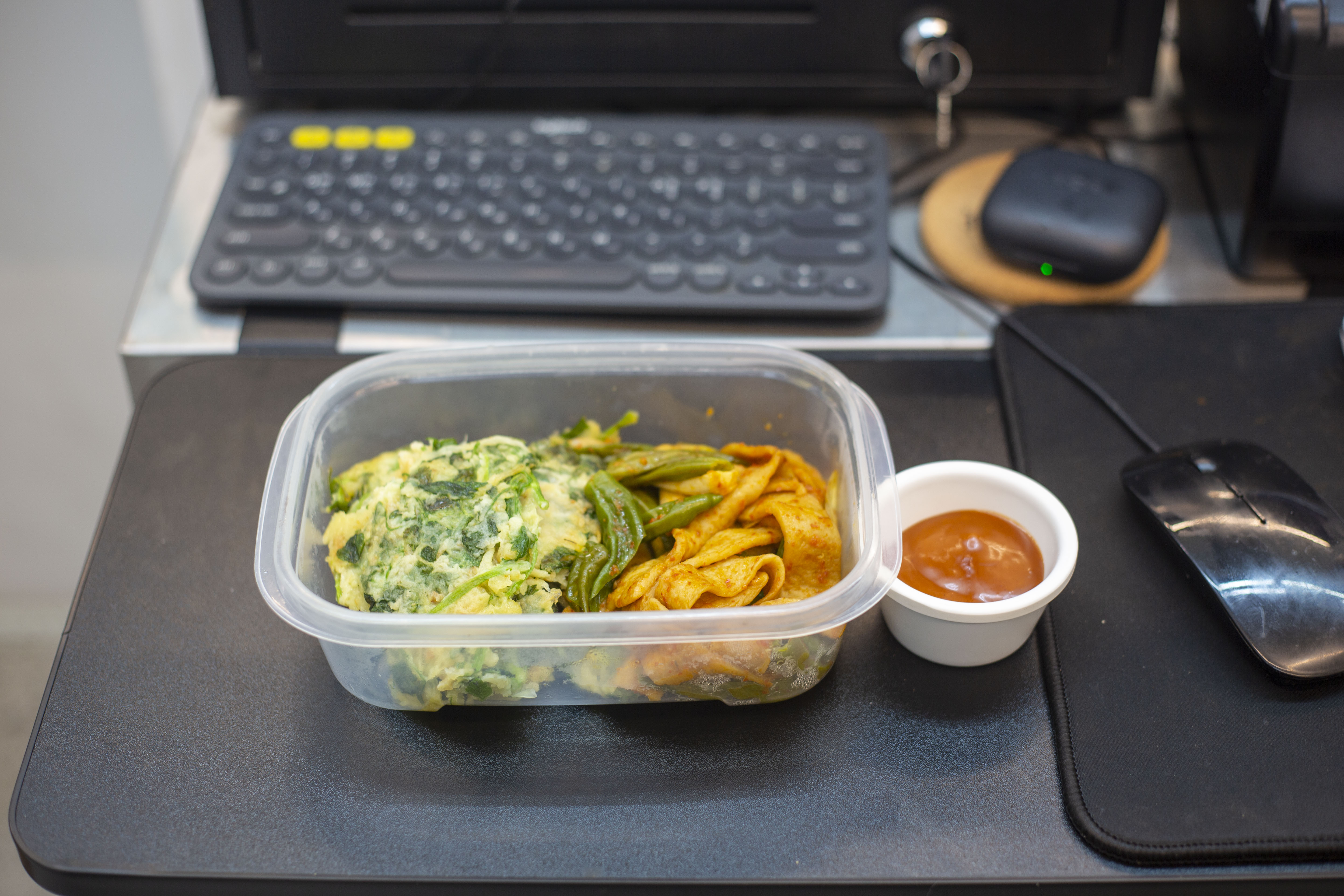 요즘 아내가 요리를 조금씩 하는데 미나리 전과 어묵 무침이 맛있었다. 오늘 점심.