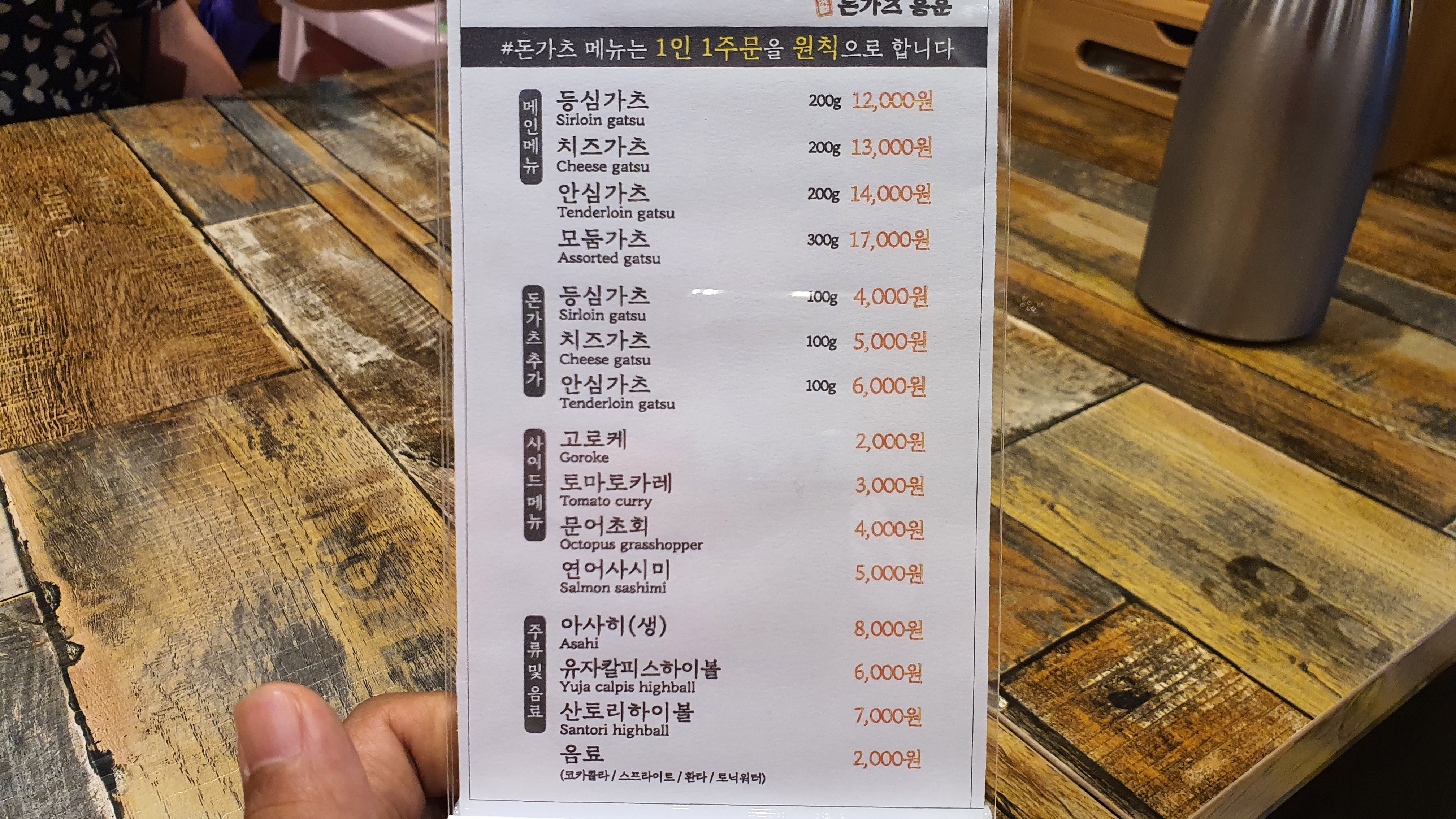 메뉴와 가격표. 1인 1주문이 원칙임. 728x90반응형'정보(Information) > 대한민국 맛집멋집' 카테고리의 다른 글