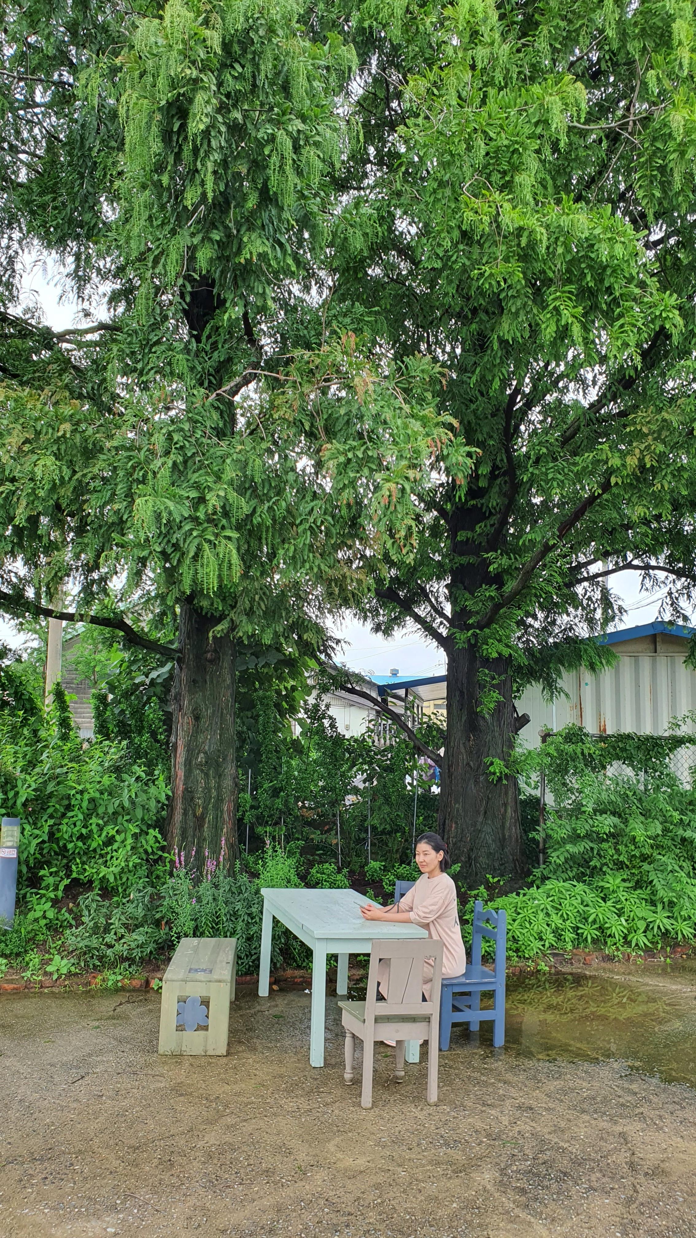 카페 후문쪽의 메타쉐콰이어 나무 오늘은 왠일인지 아내가 메타쉐콰이어 아래 테이블에 앉아 사진을 찍어달라고 포즈를 취한다. 아마도 예전 어렸을 적 군산에서의 추억이 생각났을지도 모른다. 어렸을 때는 상상도 못 했던 남자와 결혼을 했고 이제는 뛰어다니는 아들이 있음에 세월의 무상함을 위로받고 싶었을게다. '리즈리'는 사진을 찍을 포인트들이 너무도 많다. 사실 꽃과 나무를 좋아하는 사람들이라면 인물사진보다는 꽃과 나무를 찍기에도 시간이 모자랄 판이다. 정성스럽게 꾸며진 정원을 구경하자니 시간 가는 줄 모른다. 하지만 아니나 다를까 한 곳에서 오래 머물지 않은 장인어른께서 집에 가야 된다고 하신다(ㅎㅎ).