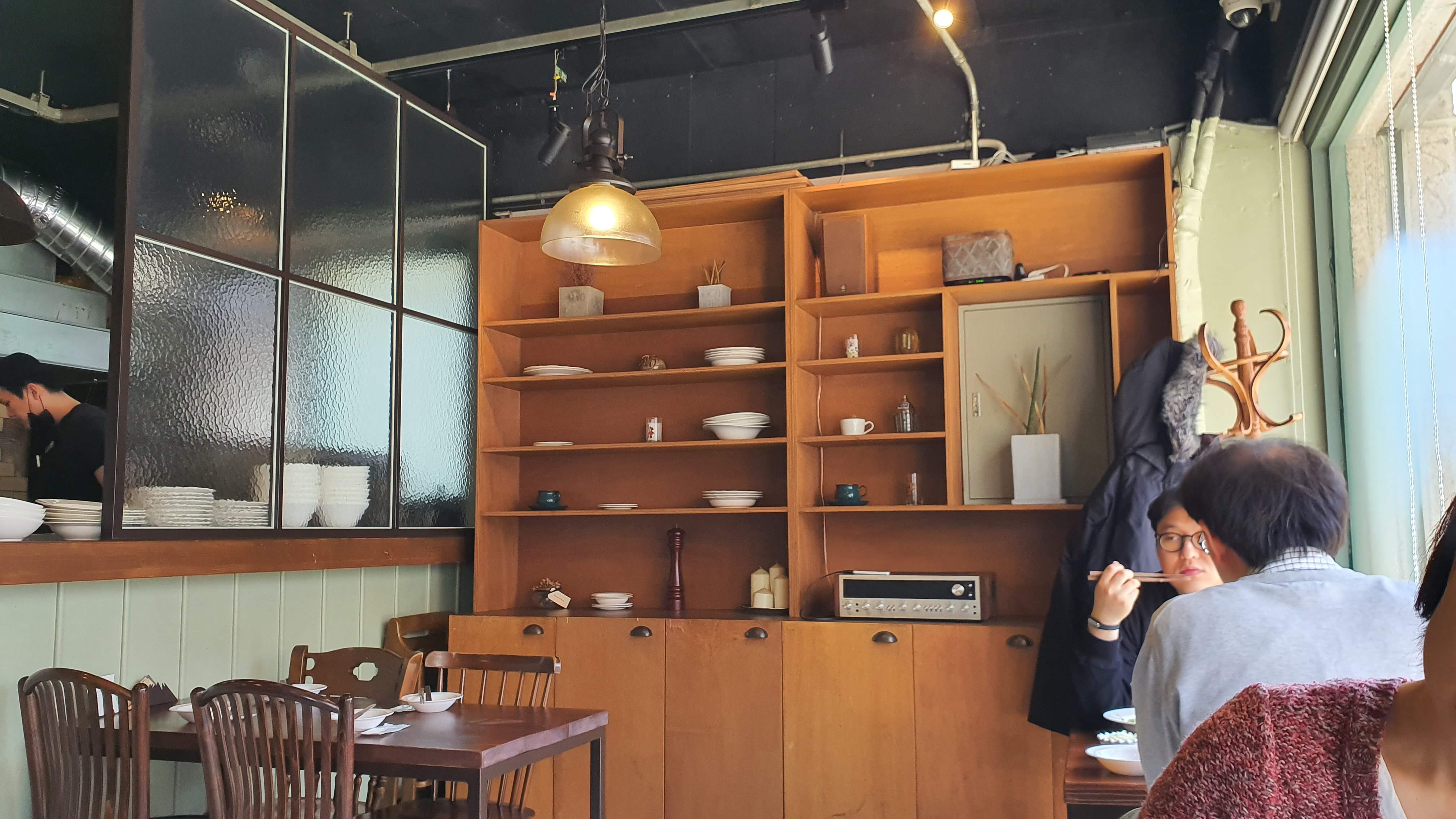 이태원에 경리단길이 있다면 일산에는 밤리단길이 있다. 엔틱한 가구거리와 이색적인 먹거리 저마다 개성을 한껏 드러낸 아기자기한 카페들. 높은 아파트 숲 사이로 3층 상가건물 1층에 자리 잡았다. 아파트 숲을 지나 숨통이 트이는 골목이다. 처음 찾아갔을 때는 건물에 간판이 없어 살짝 당황했었다. 가끔 생각하지만 네비가 없었다면 얼마나 불편했을까? 낯선 목적지를 찾아가느라 소중한 시간을 낭비하지는 않았을까? 이렇게 생각하면 기술의 진보와 과학의 발달이 우리네 삶에 얼마나 많은 도움을 주는지 생각해 보지 않을 수 없다. 물론 산업혁명과 자본주의 발달로 인한 환경오염은 우리에게 다시금 재앙을 불러오고 있는 중이다(올해 장마는 50일이 넘는다. 이게 말이 되냐?). 아무튼 이번에도 점심시간에 맞추어서 갔었는데 딱 4인용 테이블이 자리가 있어 앉았다.