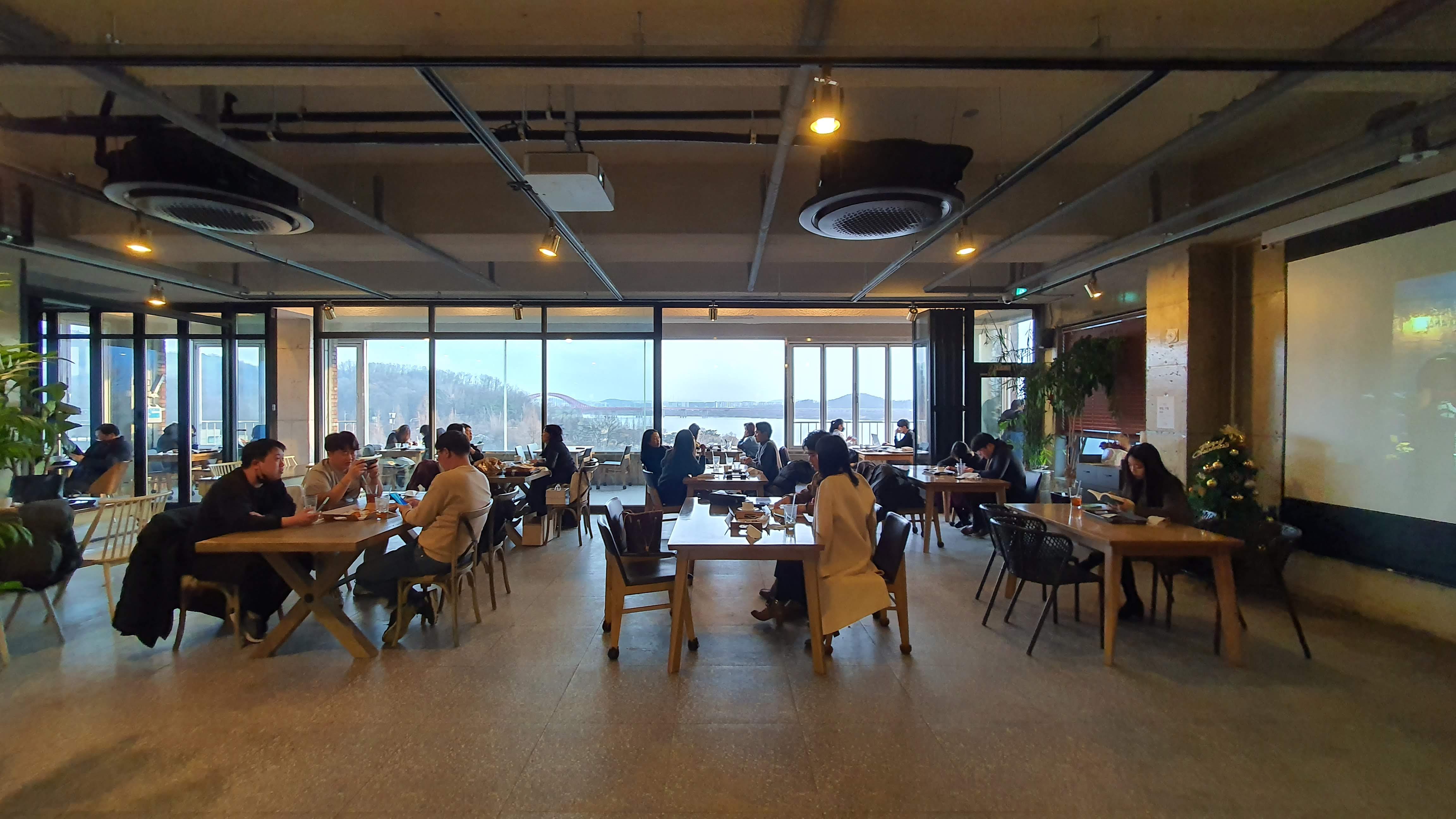 4층 . 원래는 다이닝 룸으로 식사를 할 수 있는 공간이다. 이번에 갔을때는 오후에 이곳에서 커피를 마실 수 있었다. 모든 것이 만족스러운 하루 였다. 코로나로 힘든 요즘 조금은 힐링이 되는 기분이었다. 하지만, 많은 사람들로 인해 1시간 좀 못 되는 시간만 보내고 집으로 발걸음을 향했다. 매장에서 들려오는 음악 소리가 예사롭지 않은 엠프와 스피커를 통해서 흘러나왔다. 고객은 젊은이부터 나이가 든 어르신까지 다양한 연령대를 소화할 수 있는 장소로 모임이나 미팅을 할 수 있는 규모가 꽤 큰 카페라 할 수 있겠다. 브런치도 하는 것을 보면 음식도 한 번 먹어보고 싶은 생각이 들었다.
