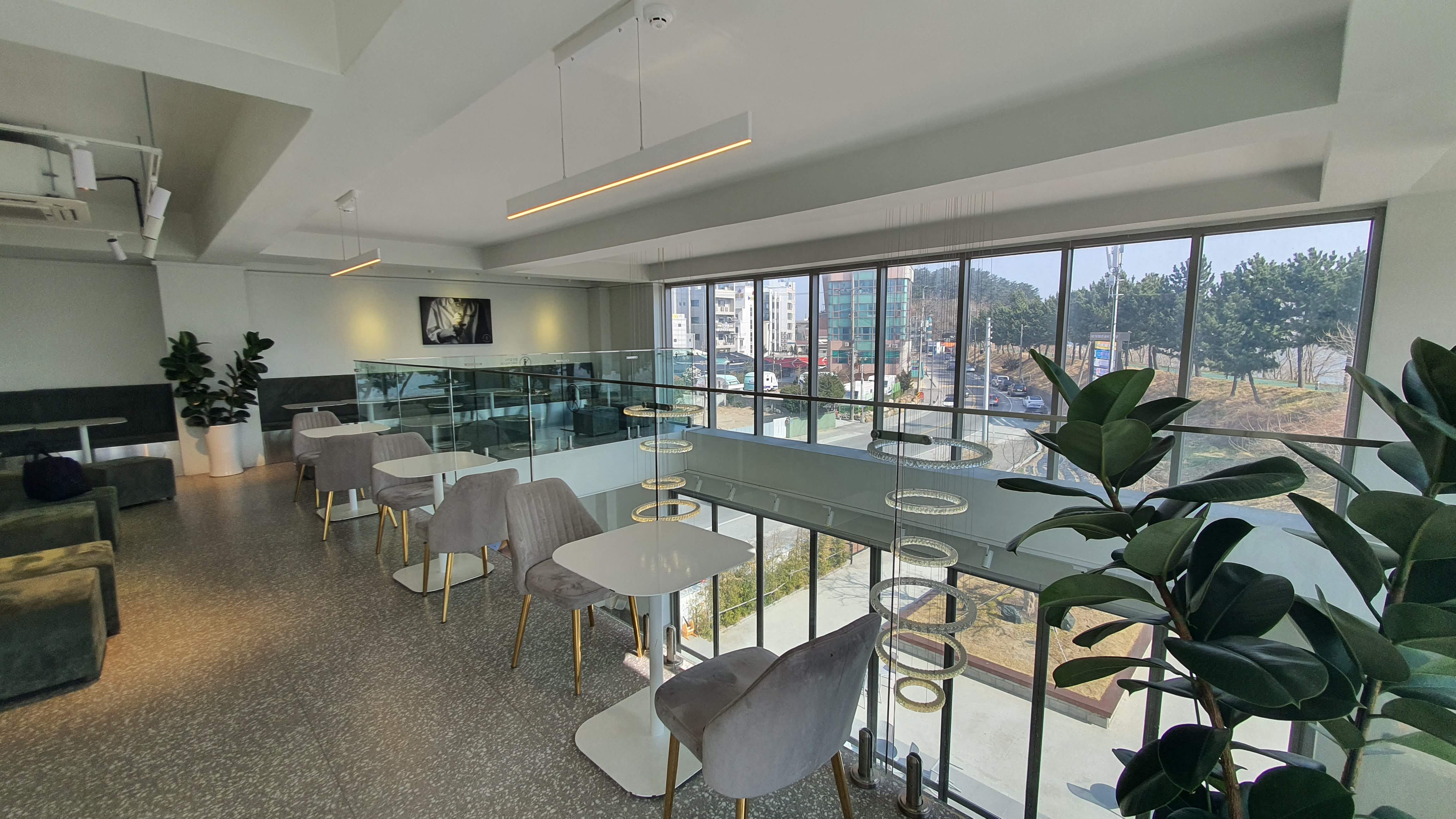 모던한 1층 로비. 젤라또똬 커피. 티를 주문할 수 있다.