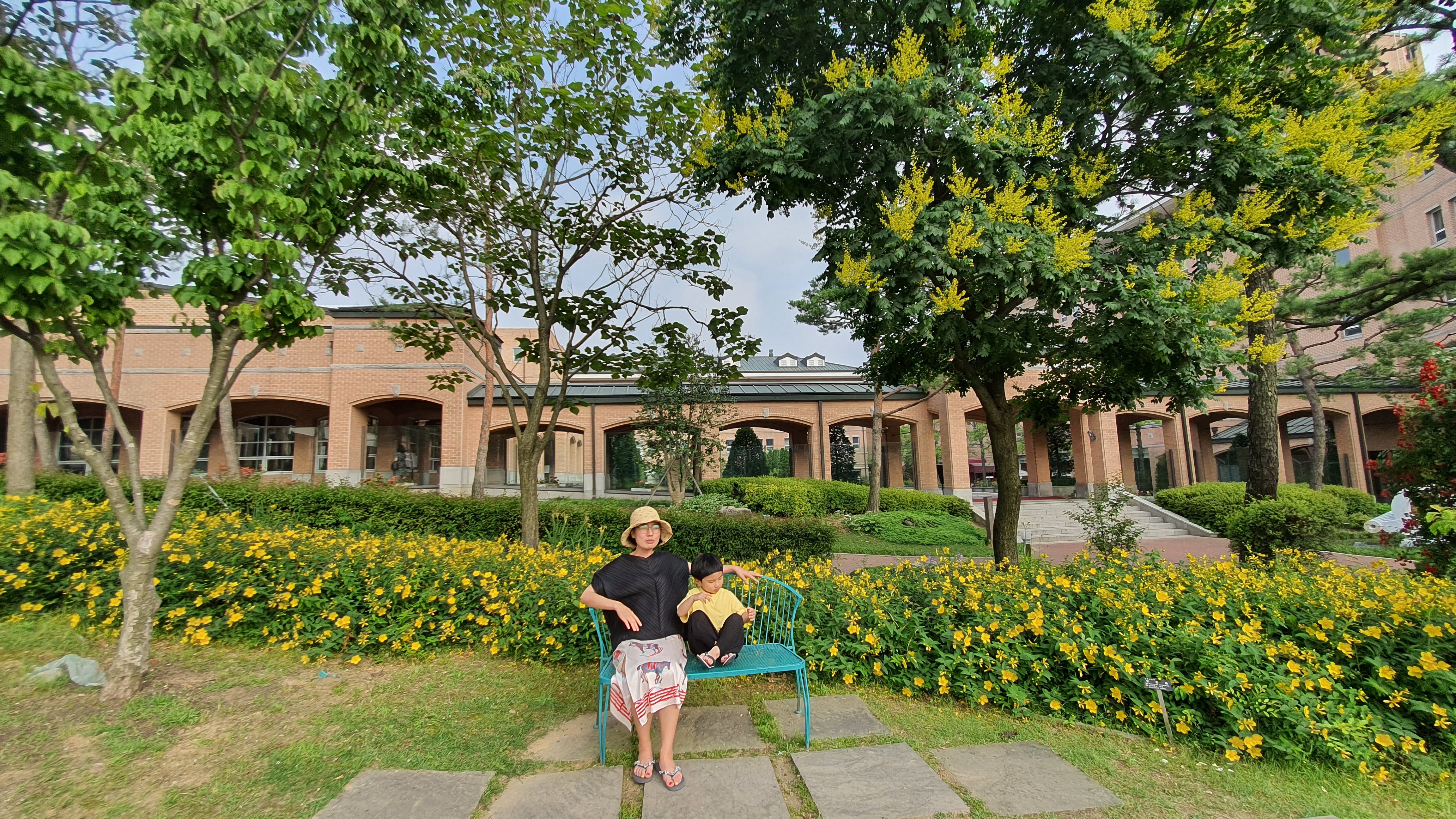 수영장 이용 후 메이필드 스위트 1층 건물에 있는 CU 편의점에서 1만 원으로 맥주캔 5개를 사서 정말 커다란 메타쉐콰이어 나무 아래 자리를 잡고 시원한 바람을 맞으며 먹는 맥주 맛이 일품이었다. 저녁 먹기 전 잠시 둘러본 메이필드 호텔의 정원은 나무랄 때 없었다. 호텔 이름인 5월의 정원답게 잘 꾸며진 조경이었다. 메이필드 호텔 소개에도 나와 있듯이 조경 회사에서부터 시작한 호텔의 역사가 돋보이는 순간이다. 나무를 피해서 건축물을 짓고 얼마나 조경에 심혈을 기울였는지 알 수 있었다. 더 깊은 호텔 산책은 내일 아침 조식을 한 후 하기 위해 아껴두었다.