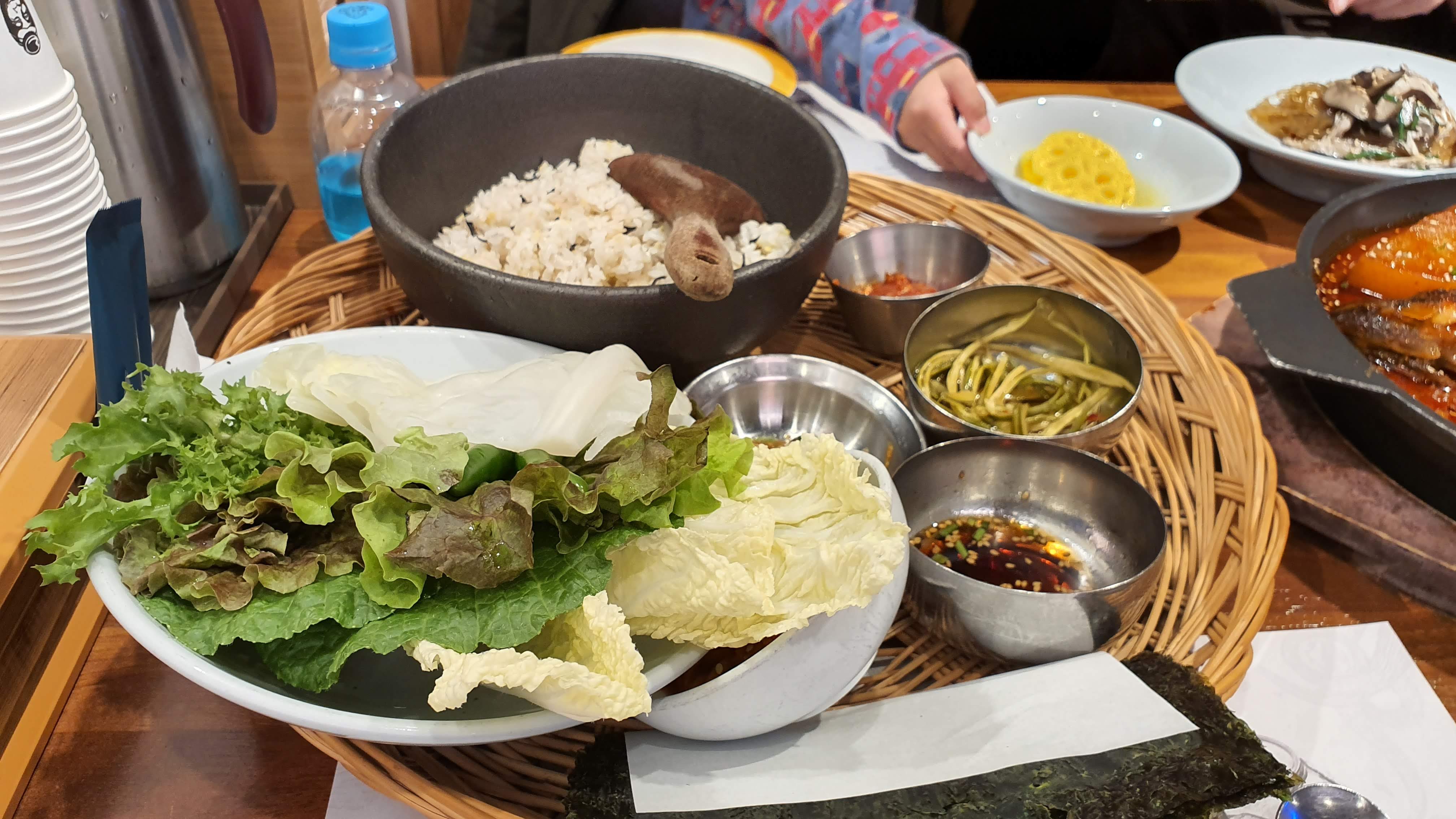 긴 기다림 끝에 입장을 안내받고 자리에 앉았다. 다들 맛있게 식사를 하는 모습이다. 메뉴판은 간단하다. 런 치 스페셜(1인: 19,000원 부터~) 이 있고 저녁 메뉴는 알뜰 상차림(1인: 29,000원), 실속 상차림(1인: 39,000), 품격 상차림(1인: 49,000), 명품상차림(1인: 59,000원)이다. 품격 이상은 숙성회가 추가된다. 우리 가족은 실속 상차림으로 주문했다. 식사를 주문한 지 꽤 시간이 되었는데도 음식이 나오지 않아 물어봤더니 그제야 음식이 제공되었다. 살짝 짜증이 난 와이프다. 우리 보나 늦게 주문한 다른 테이블 음식이 먼저 제공되었다. 바쁜 시간이라서 이해를 하고 식사를 한다.
