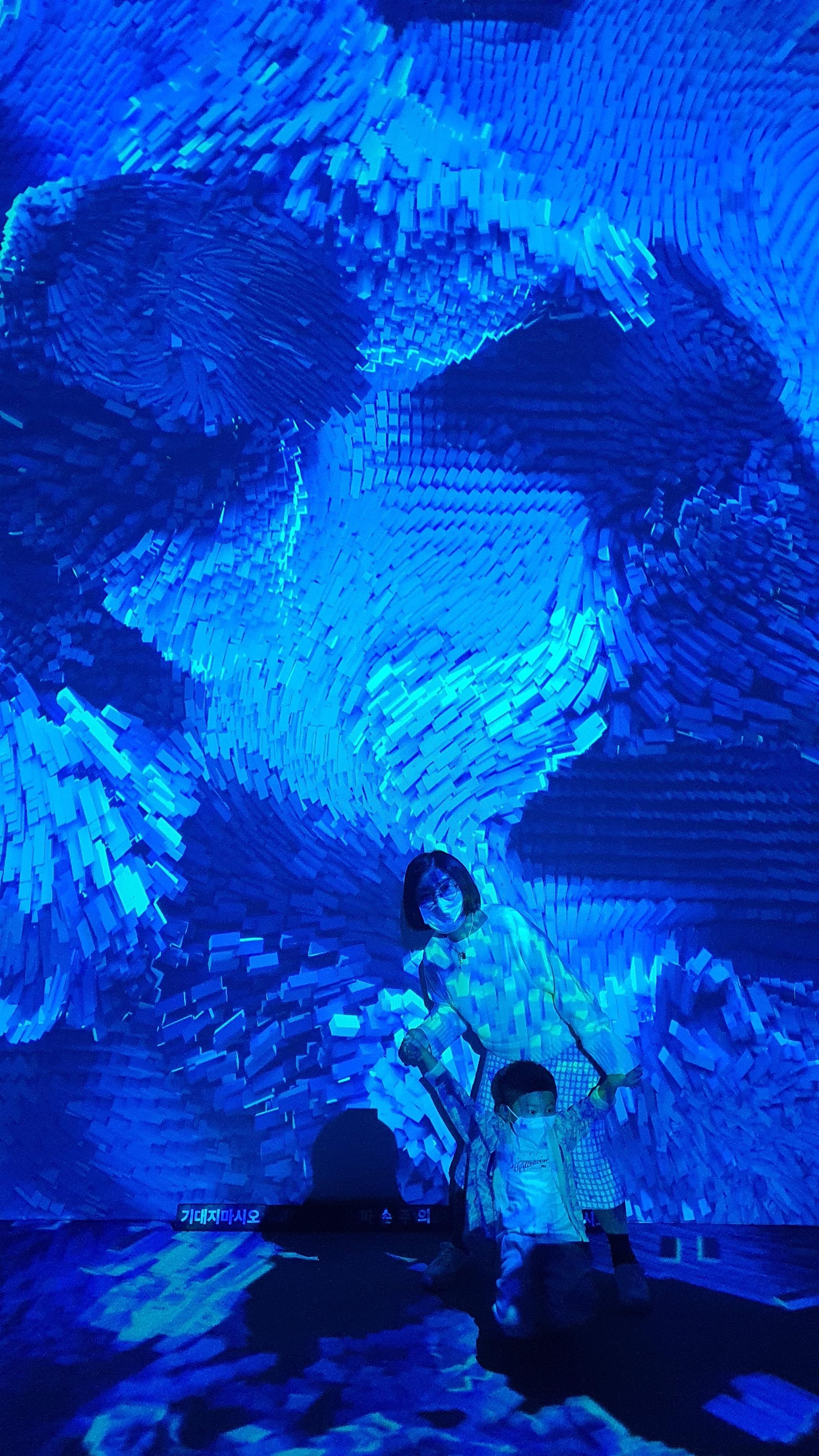 하지만, 그동안 아르떼 뮤지엄에 관해 내가 가지고 있던 선입견은 들어가자 마자 한 여름 더위에 아이스크림이 녹아 흘러내리듯이 녹아 없어져 버렸다. 눈으로 보이는 풍경이 가슴으로 느껴지고 소리의 울림은 묘한 긴장감마져 가져다주었다. 사실 아이보다 내가 더 설레었다. 이 나이에 내가 설레다니. 불혹의 나이를 훌쩍 넘긴 나인데. ㅎㅎ (아르떼 뮤지엄'의 관람 내용은 내가 뭐라고 주절 주절 글로 쓰기보다는 사진과 영상으로 설명하고 간단한 코멘트만 달았으니 관람에 참고하시면 됩니다)